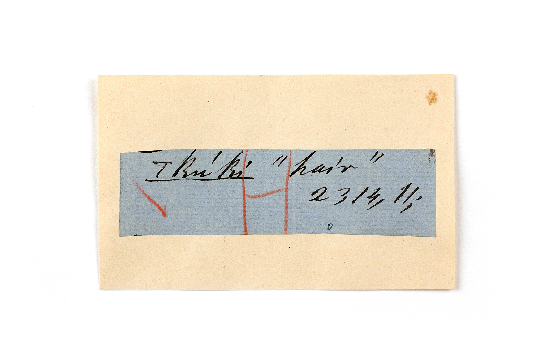 ink on blue paper glued on card