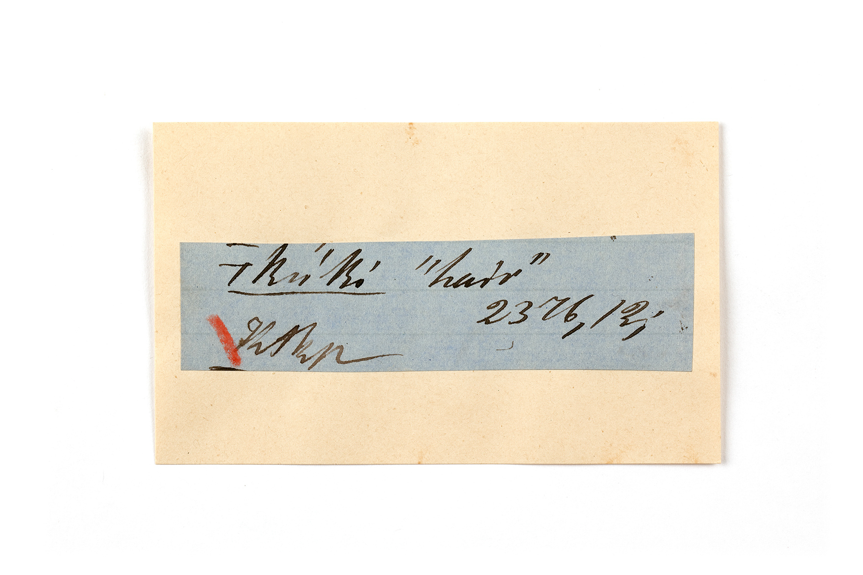 ink on blue paper glued on card
