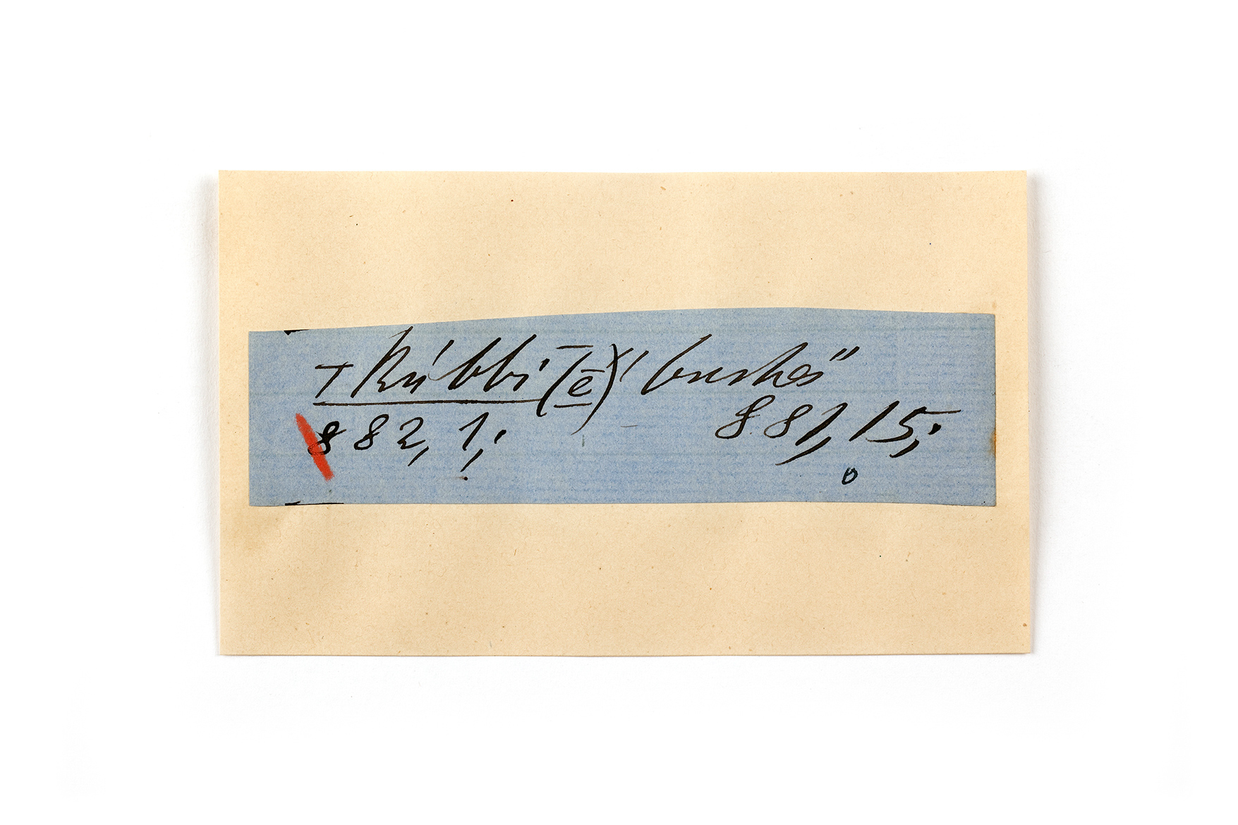 ink on blue paper glued on card