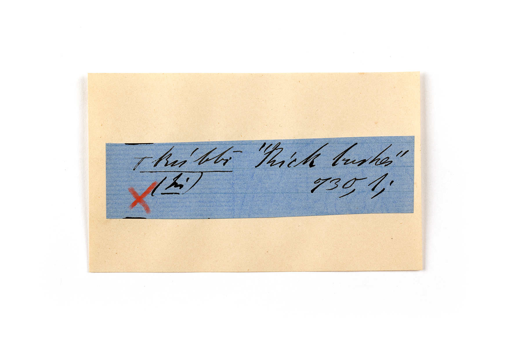 ink on blue paper glued on card