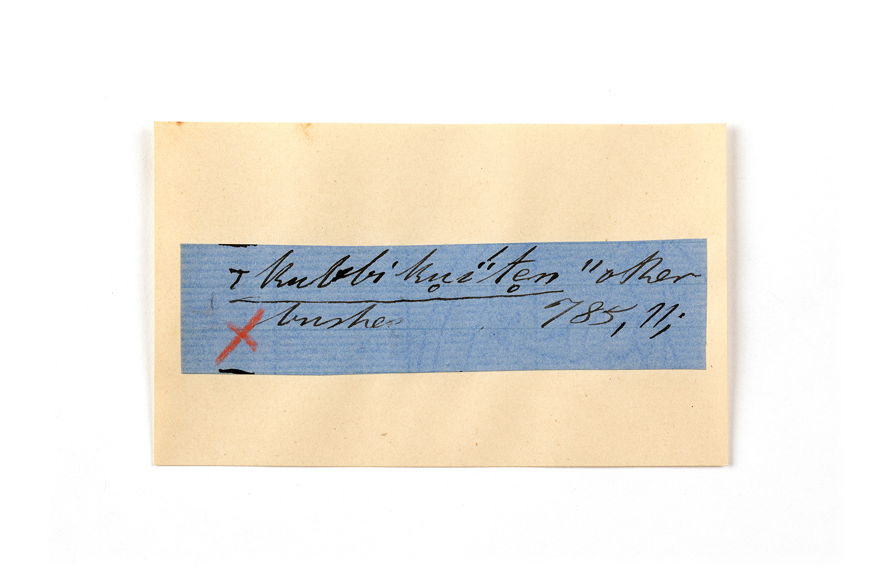 ink on blue paper glued on card