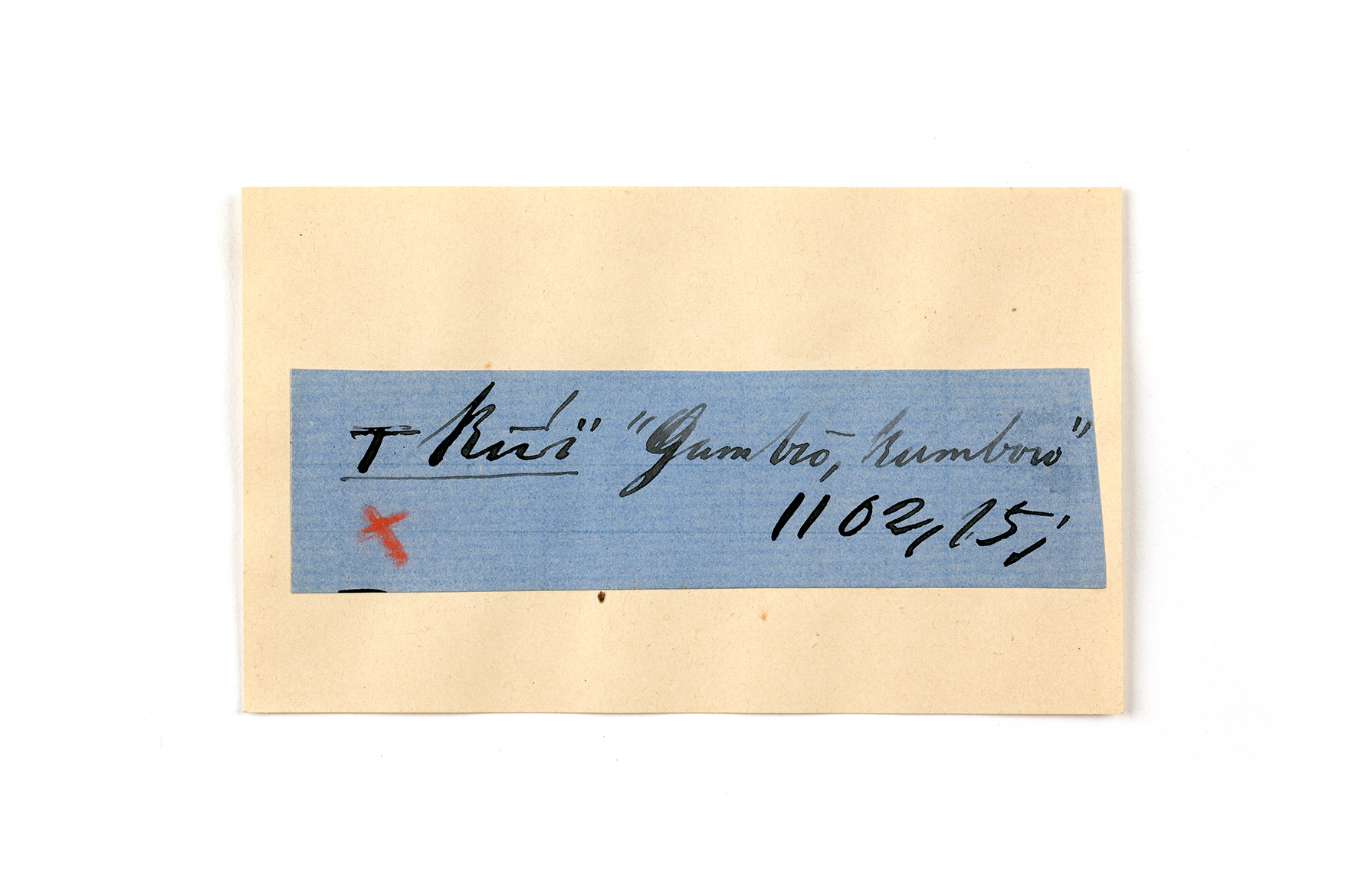ink on blue paper glued on card