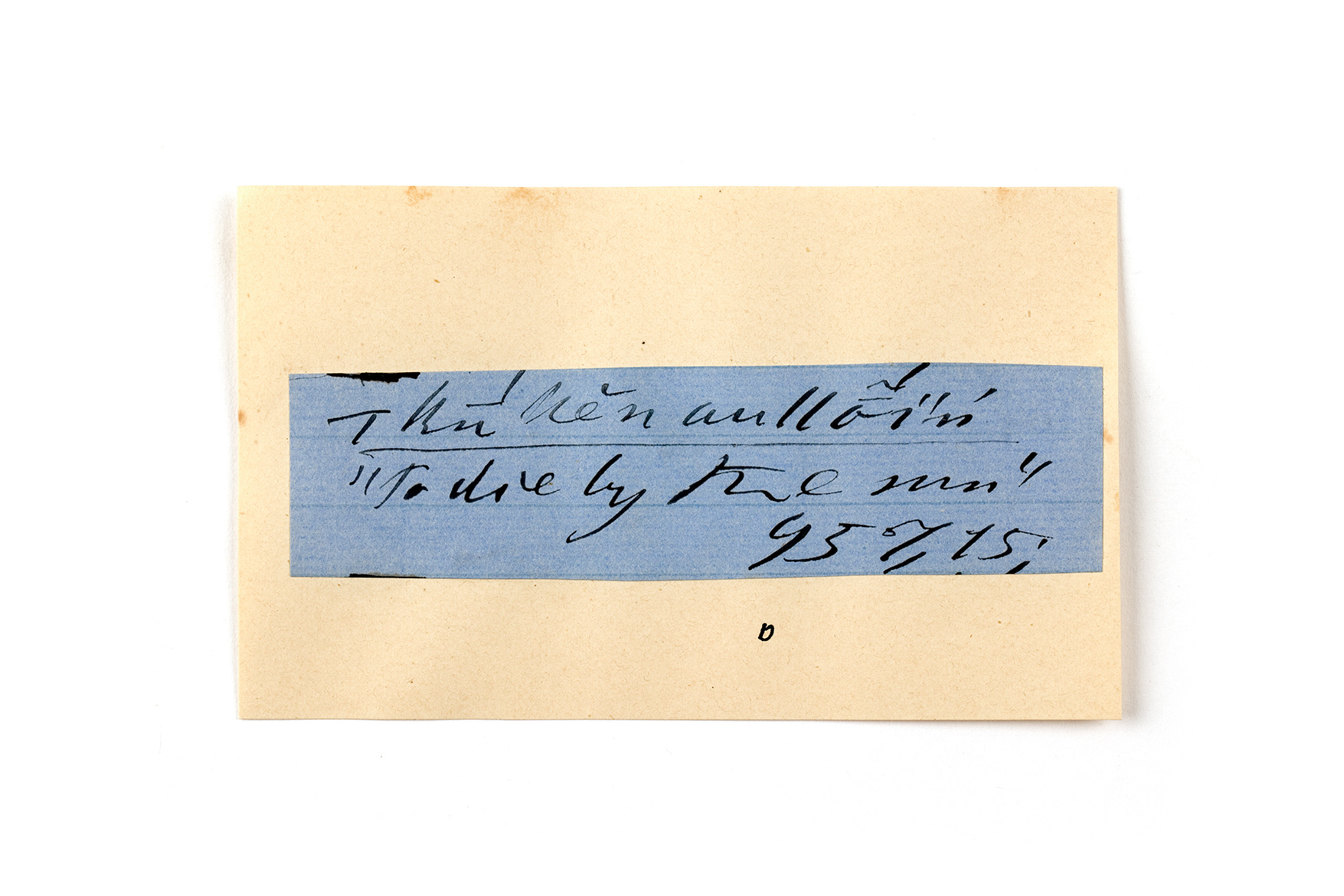 ink on blue paper glued on card