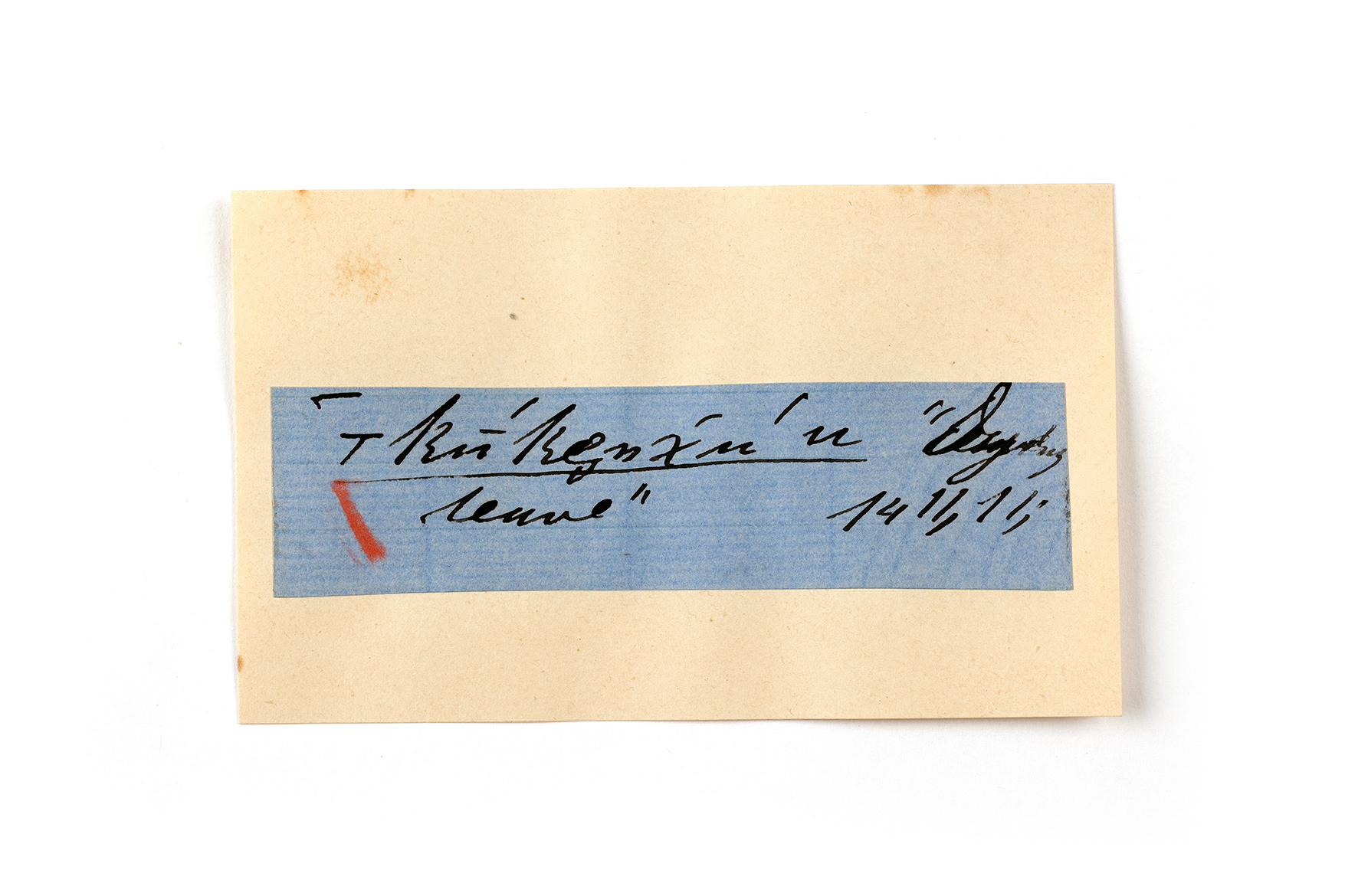 ink on blue paper glued on card