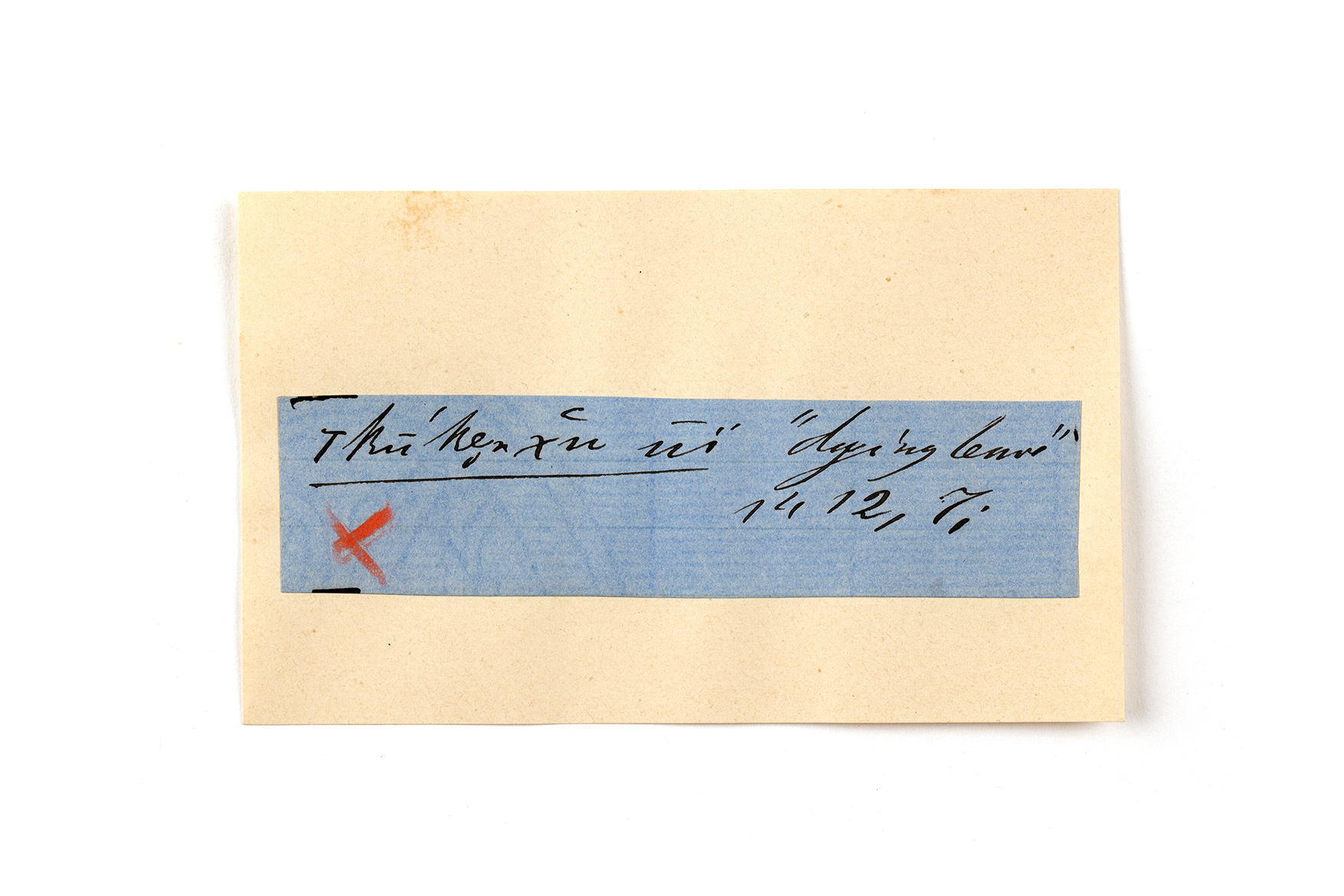 ink on blue paper glued on card