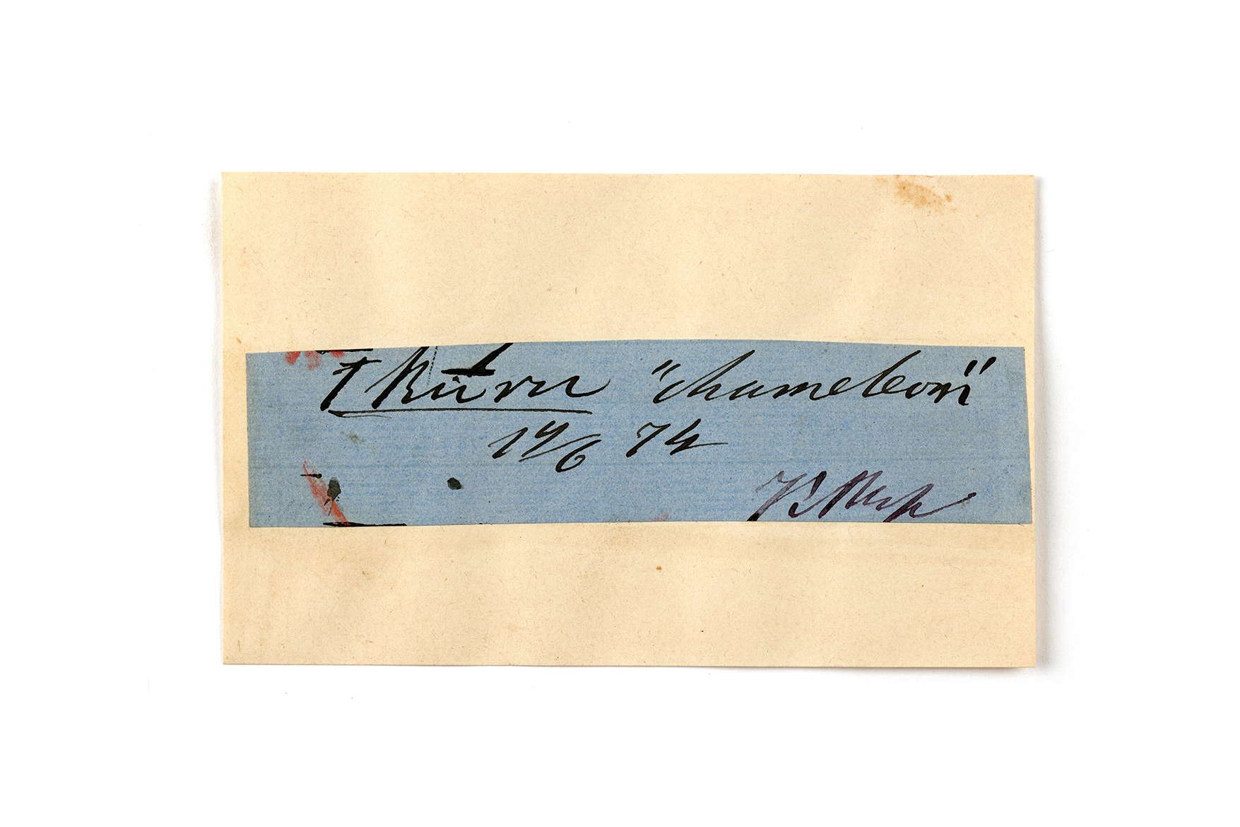 ink on blue paper glued on card
