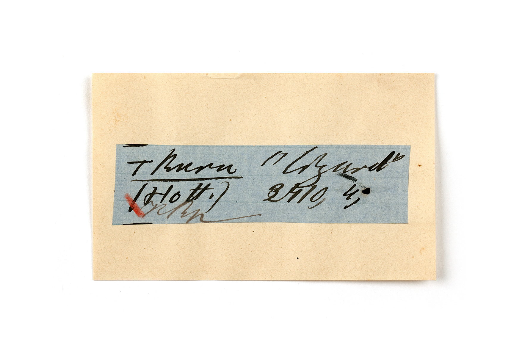 ink on blue paper glued on card