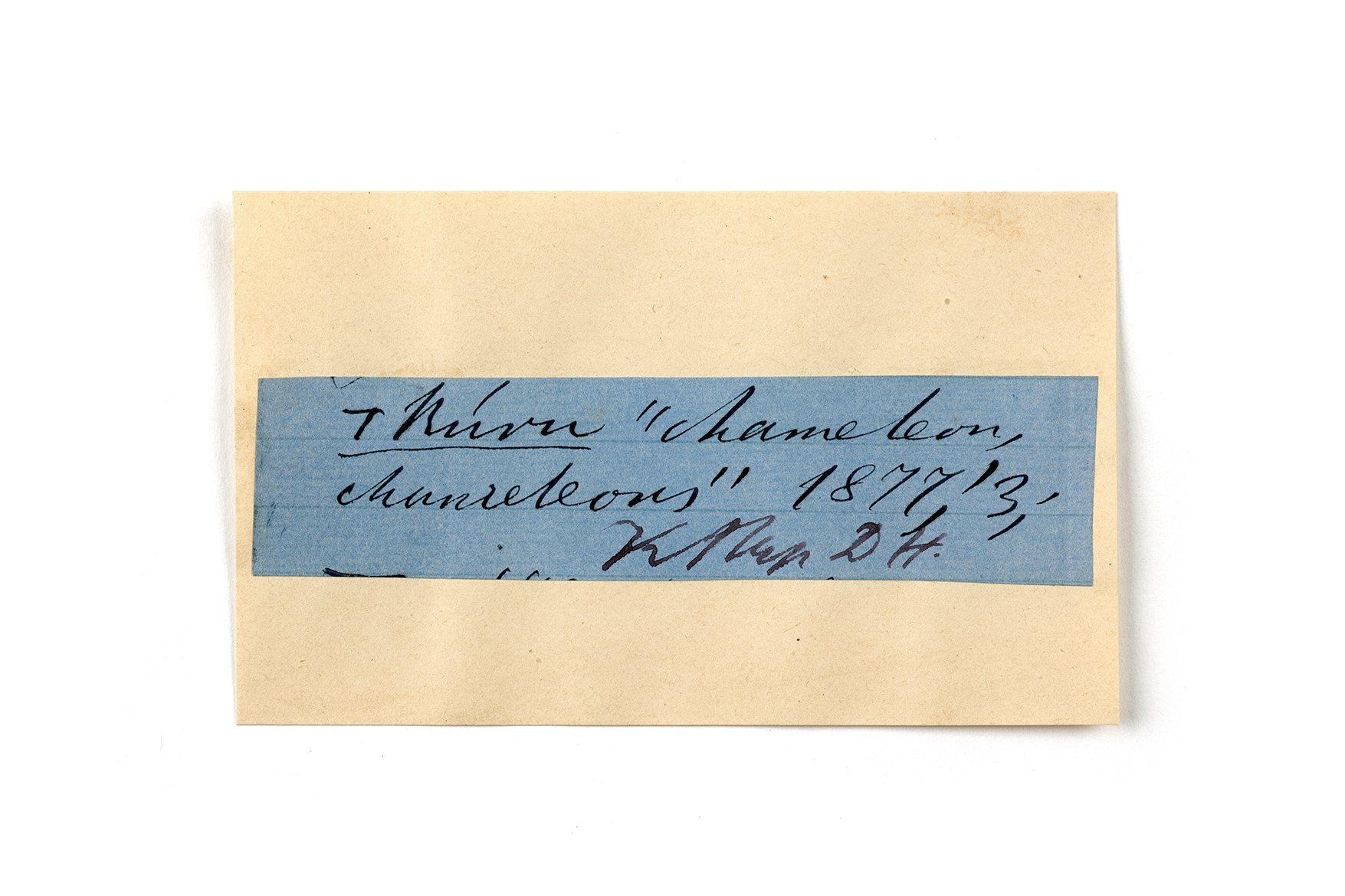 ink on blue paper glued on card