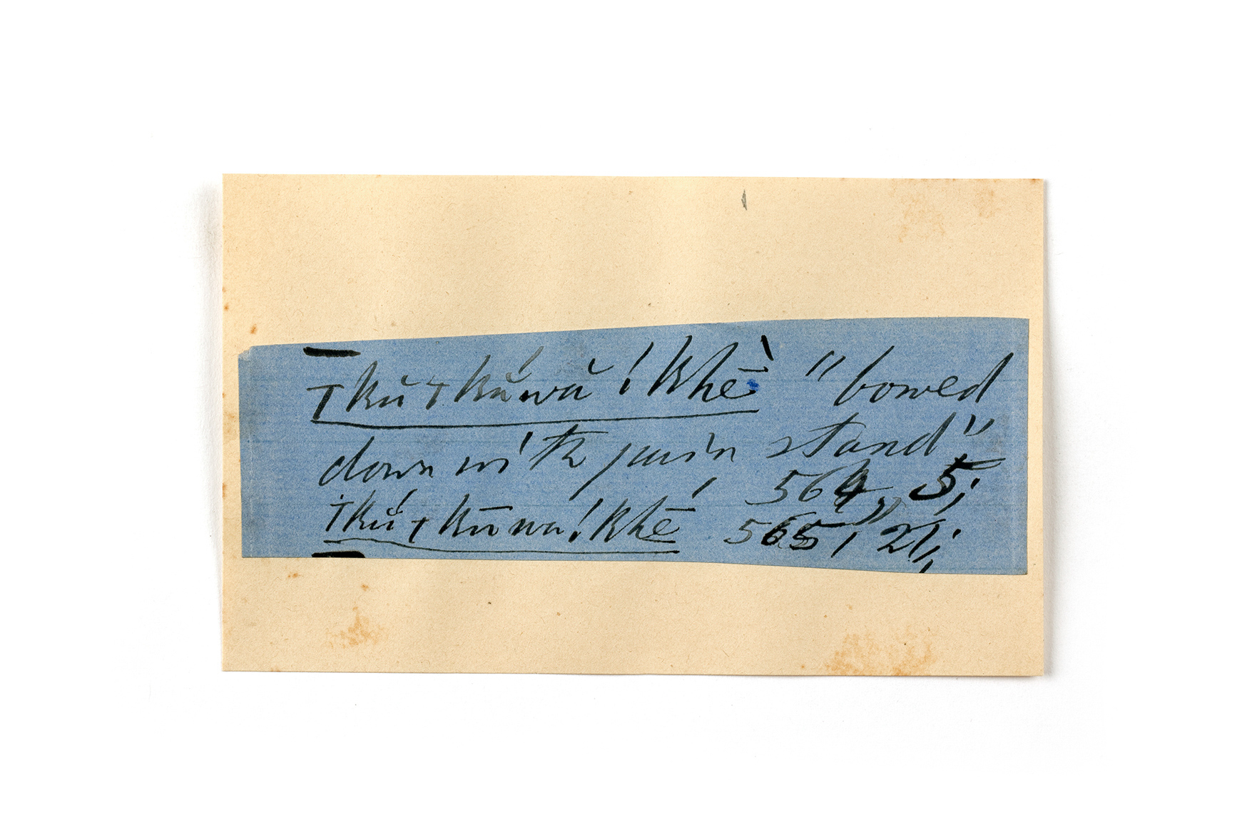 ink on blue paper glued on card