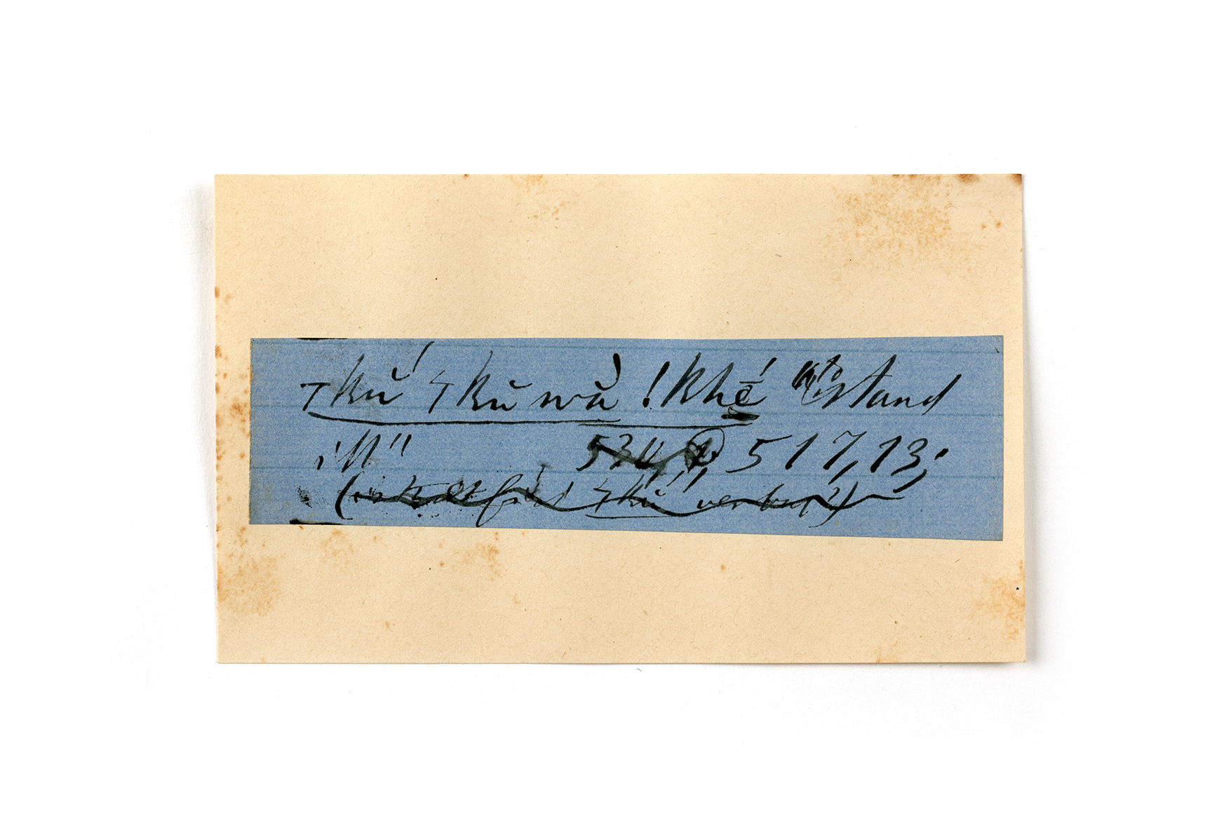 ink on blue paper glued on card