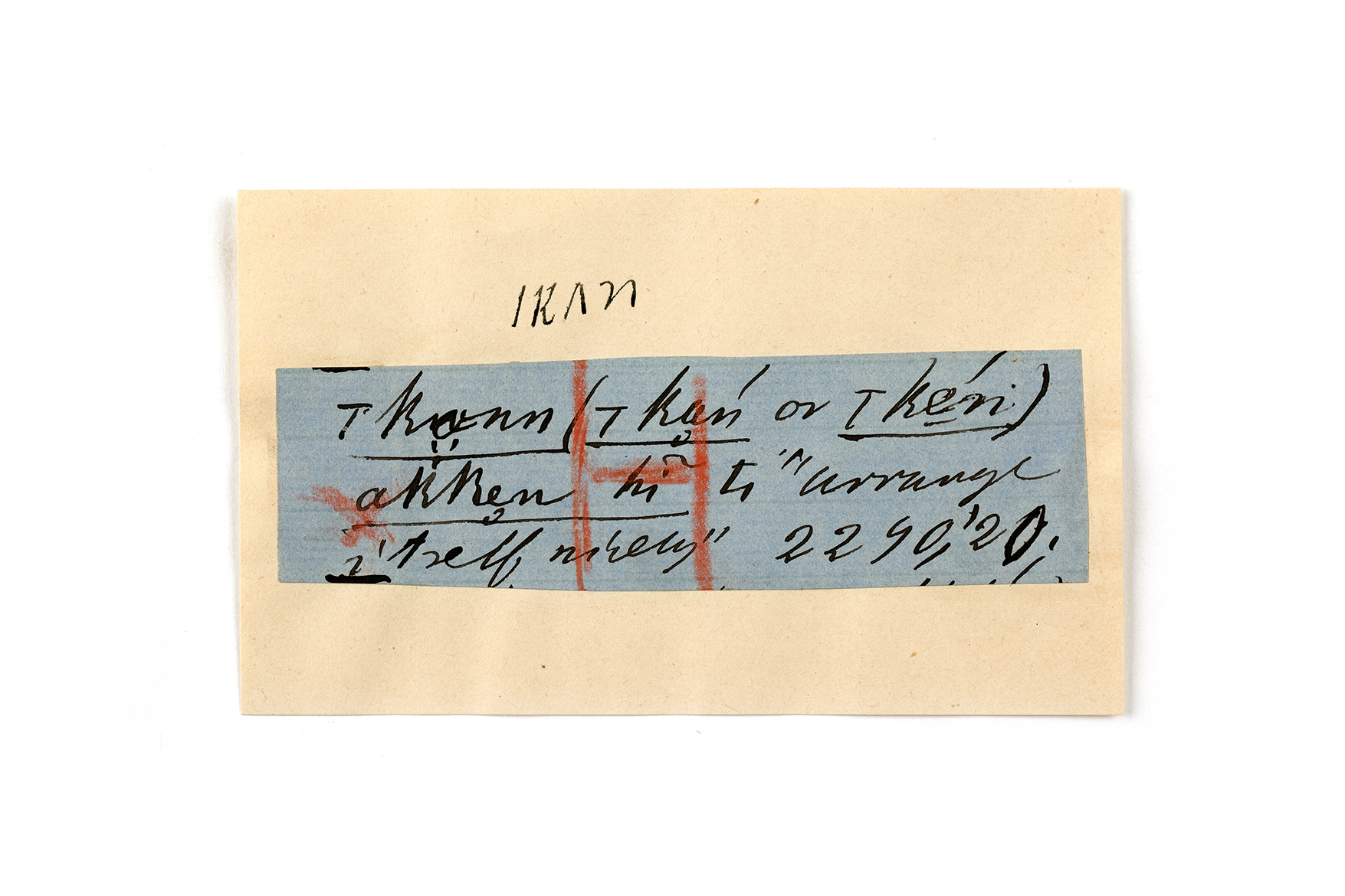 ink on blue paper glued on card