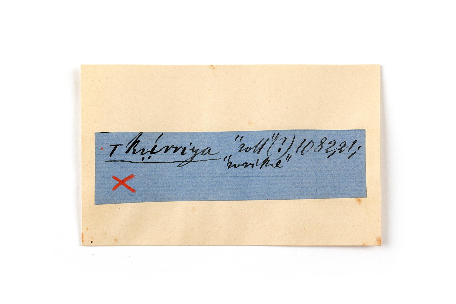 ink on blue paper glued on card