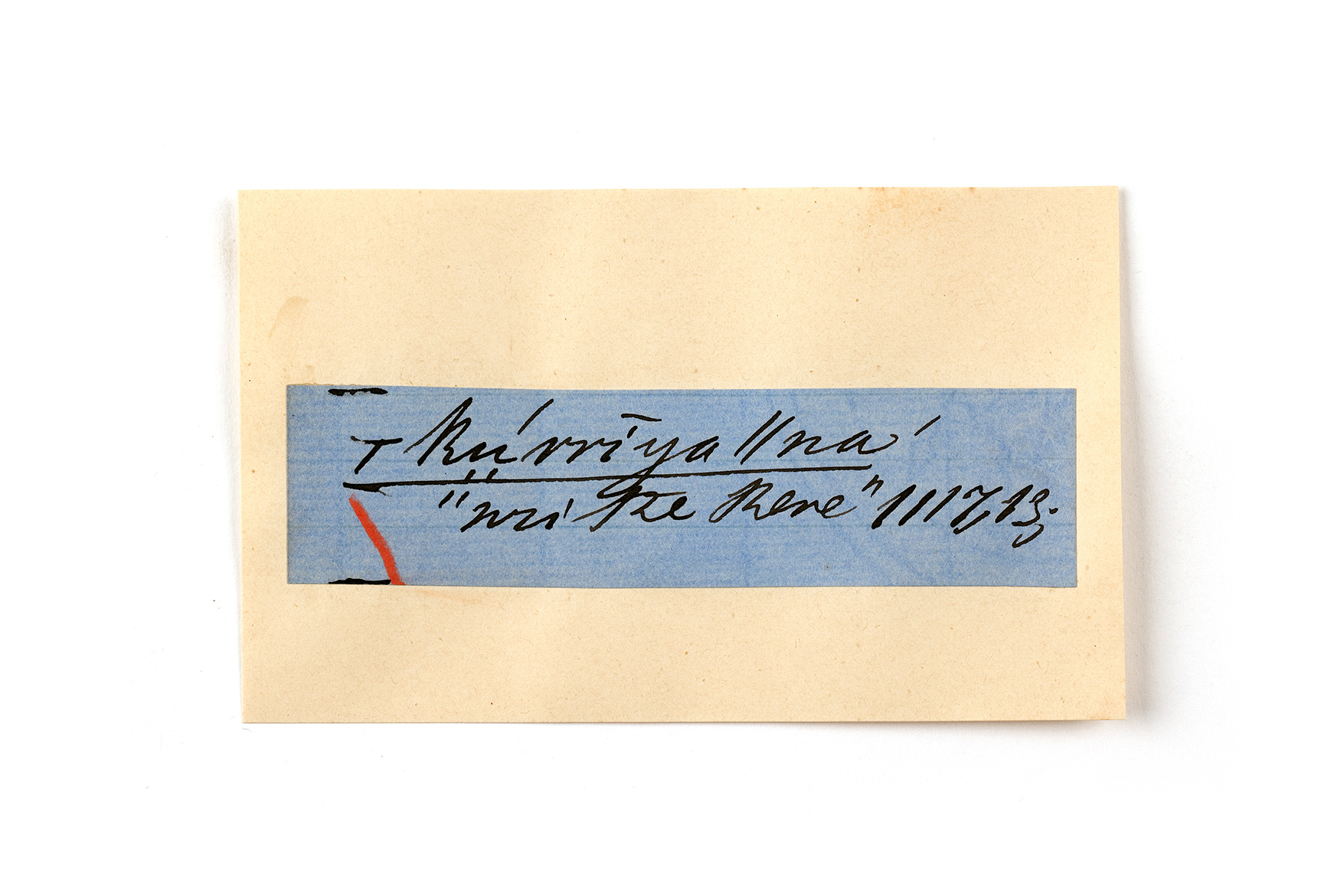 ink on blue paper glued on card