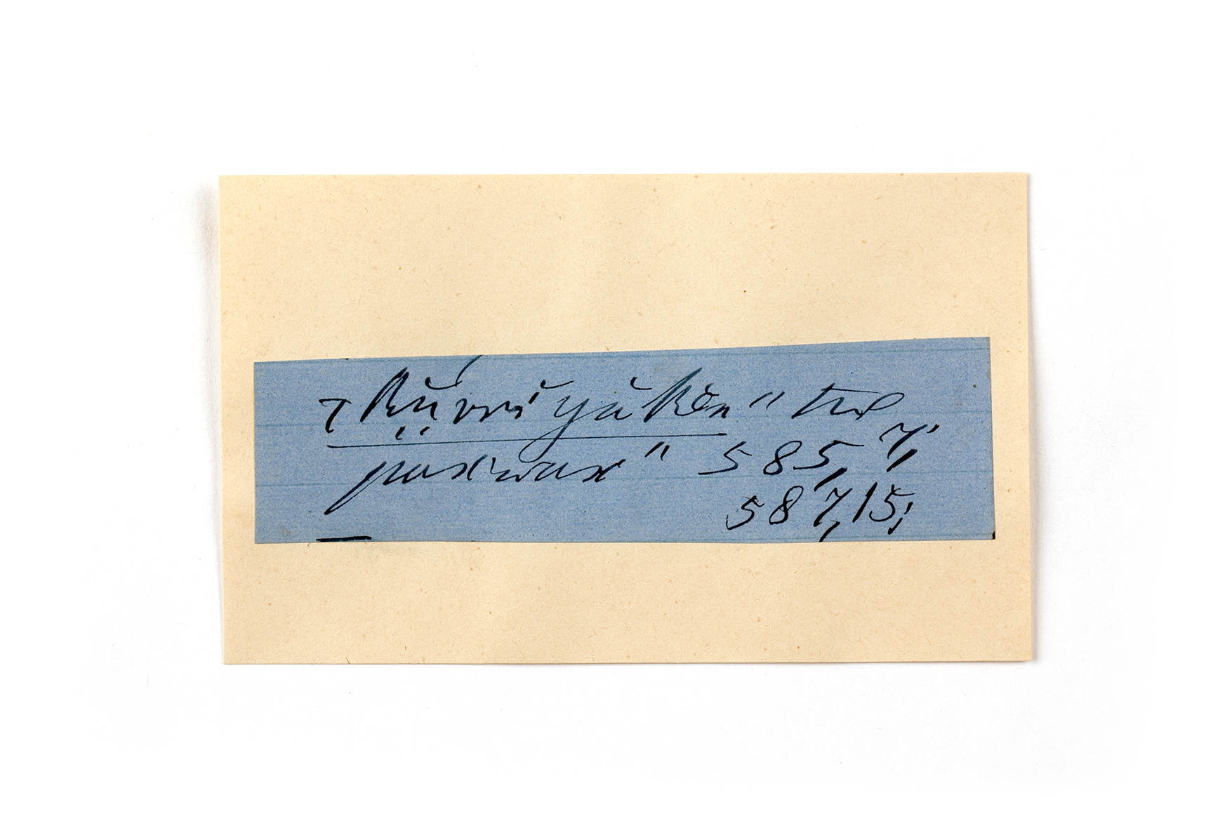 ink on blue paper glued on card