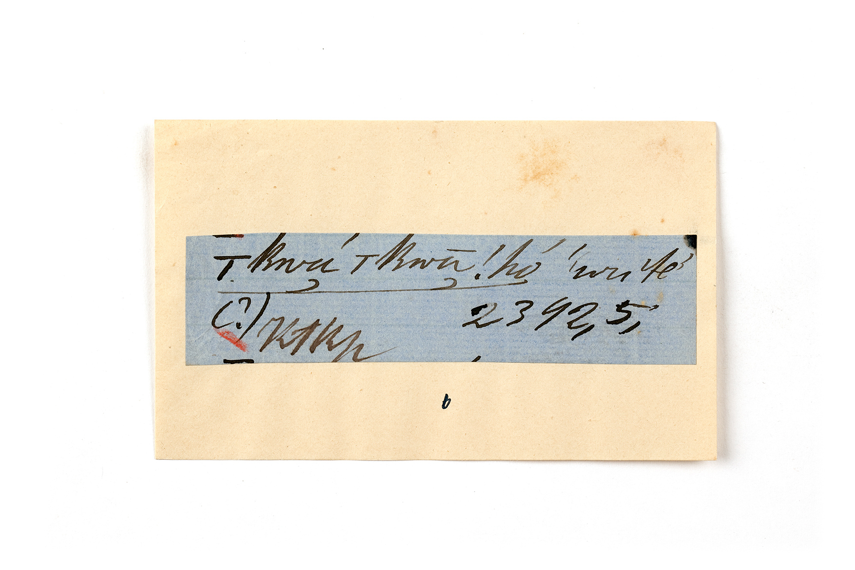 ink on blue paper glued on card