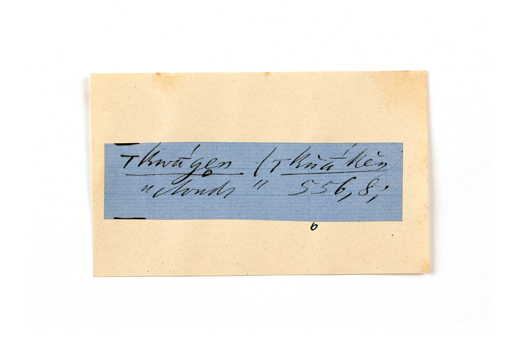 ink on blue paper glued on card