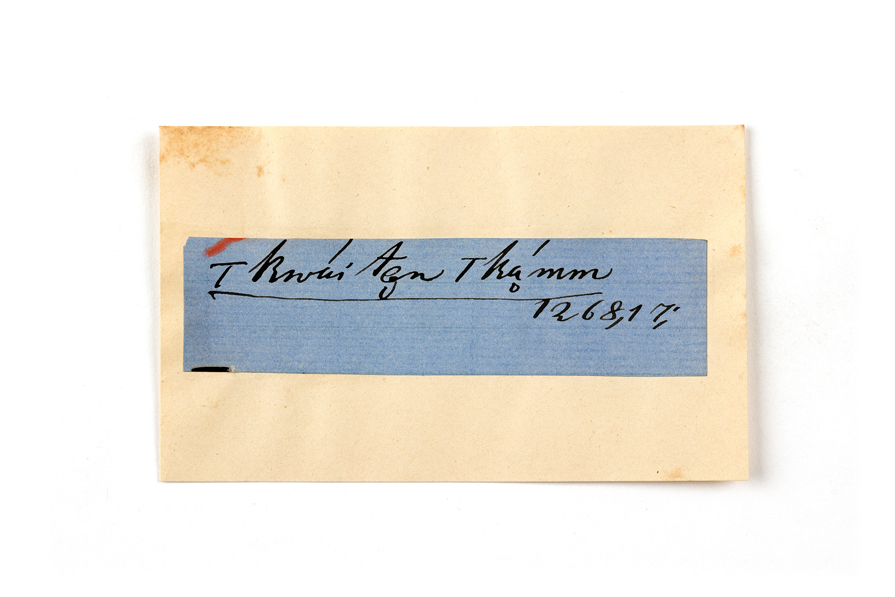 ink on blue paper glued on card