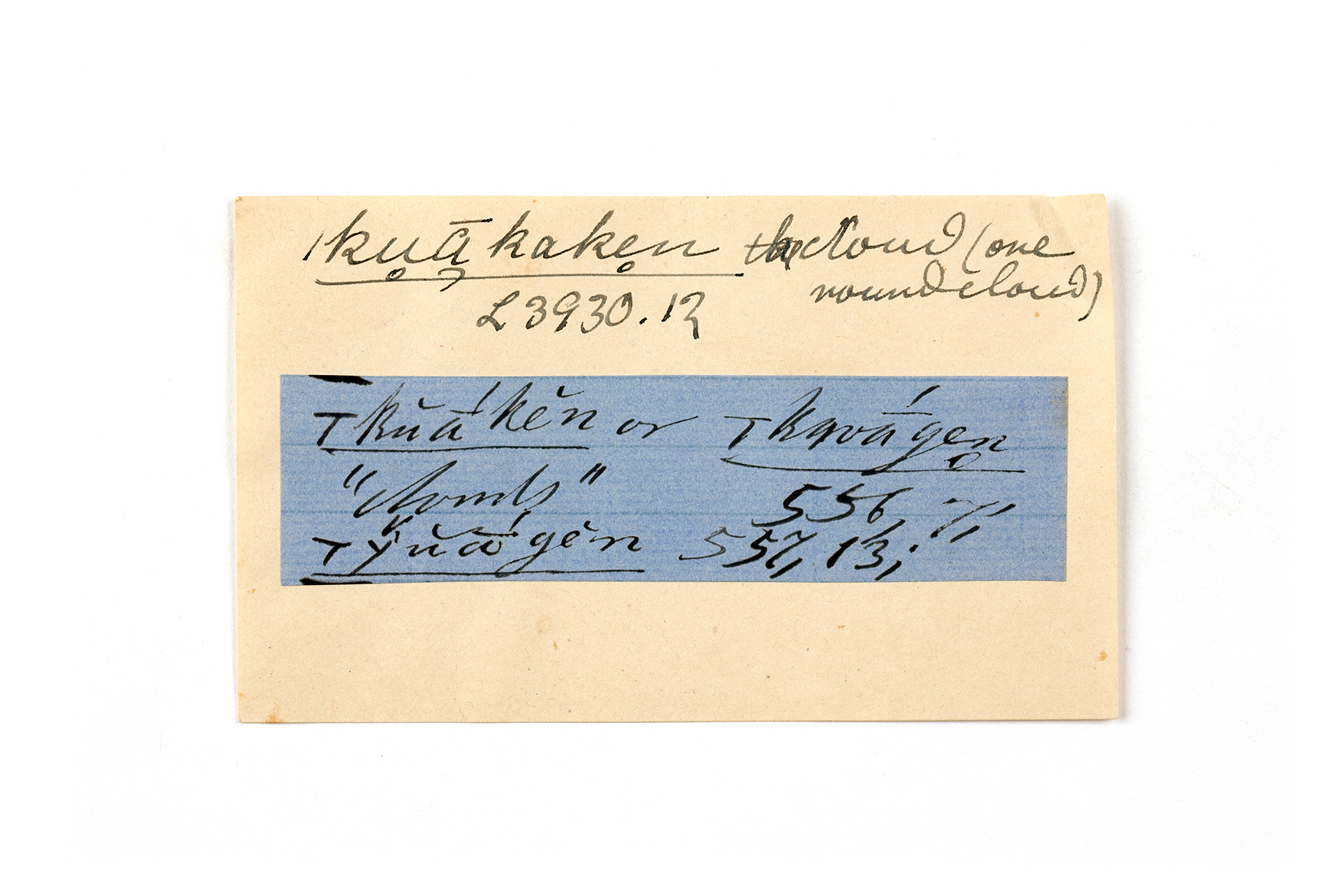 ink on blue paper glued on card