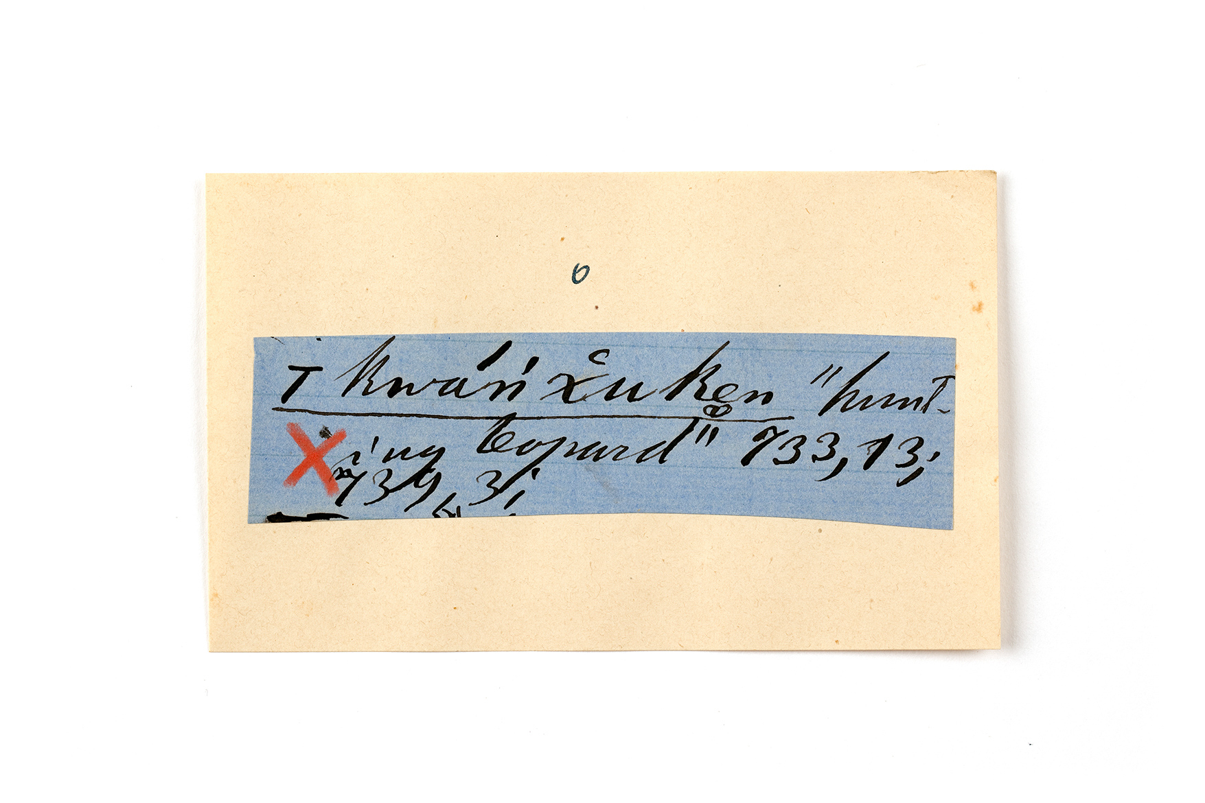 ink on blue paper glued on card