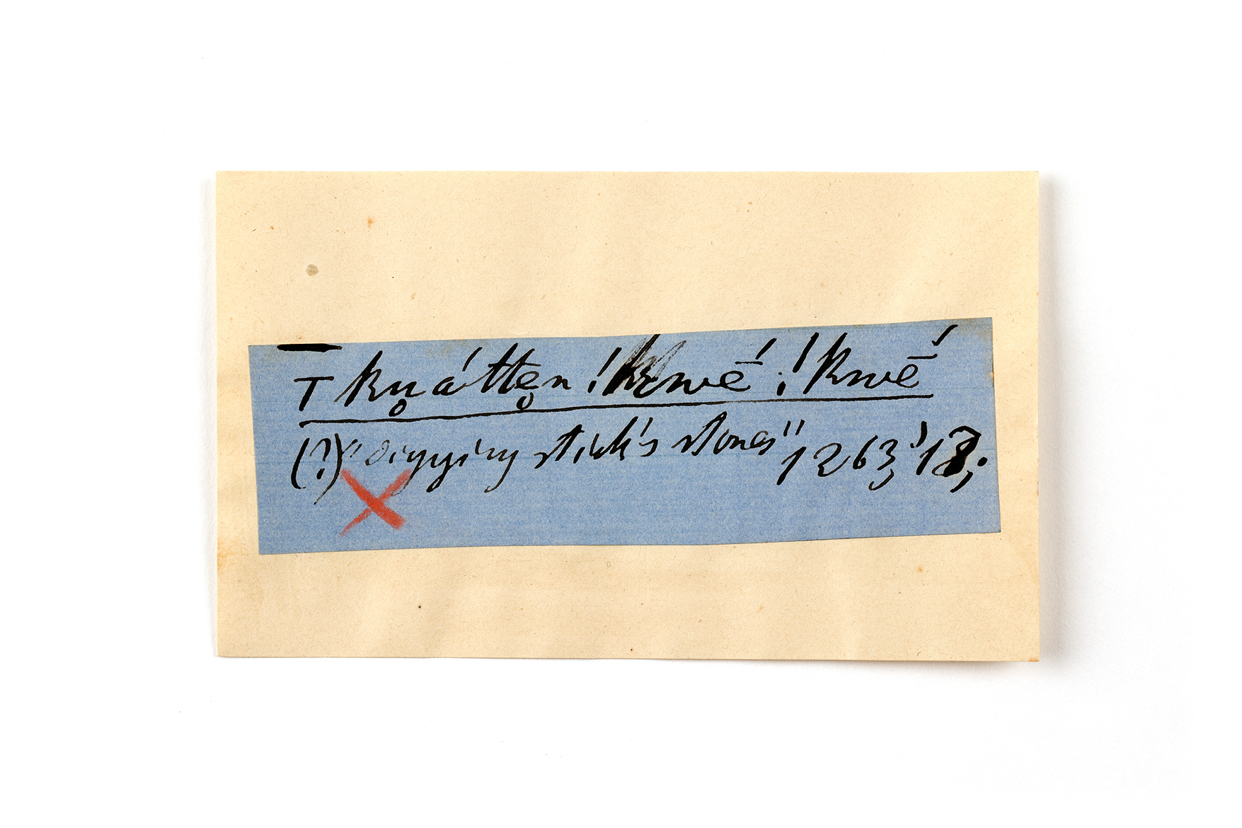 ink on blue paper glued on card