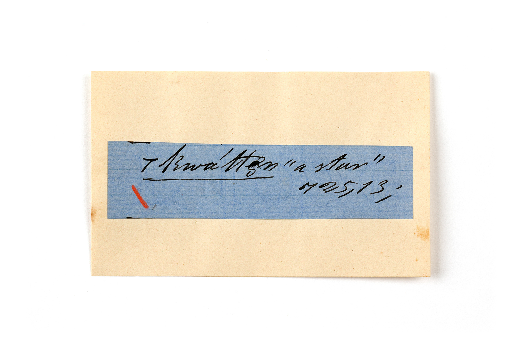 ink on blue paper glued on card