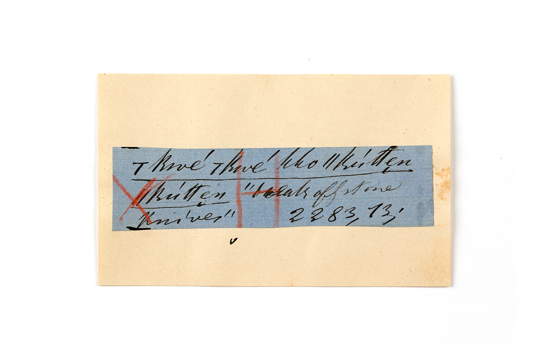 ink on blue paper glued on card
