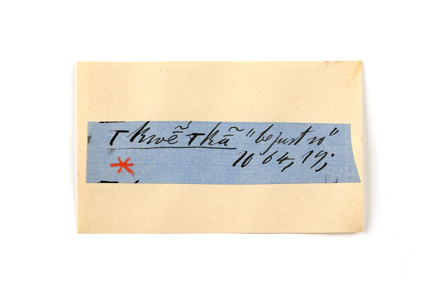 ink on blue paper glued on card