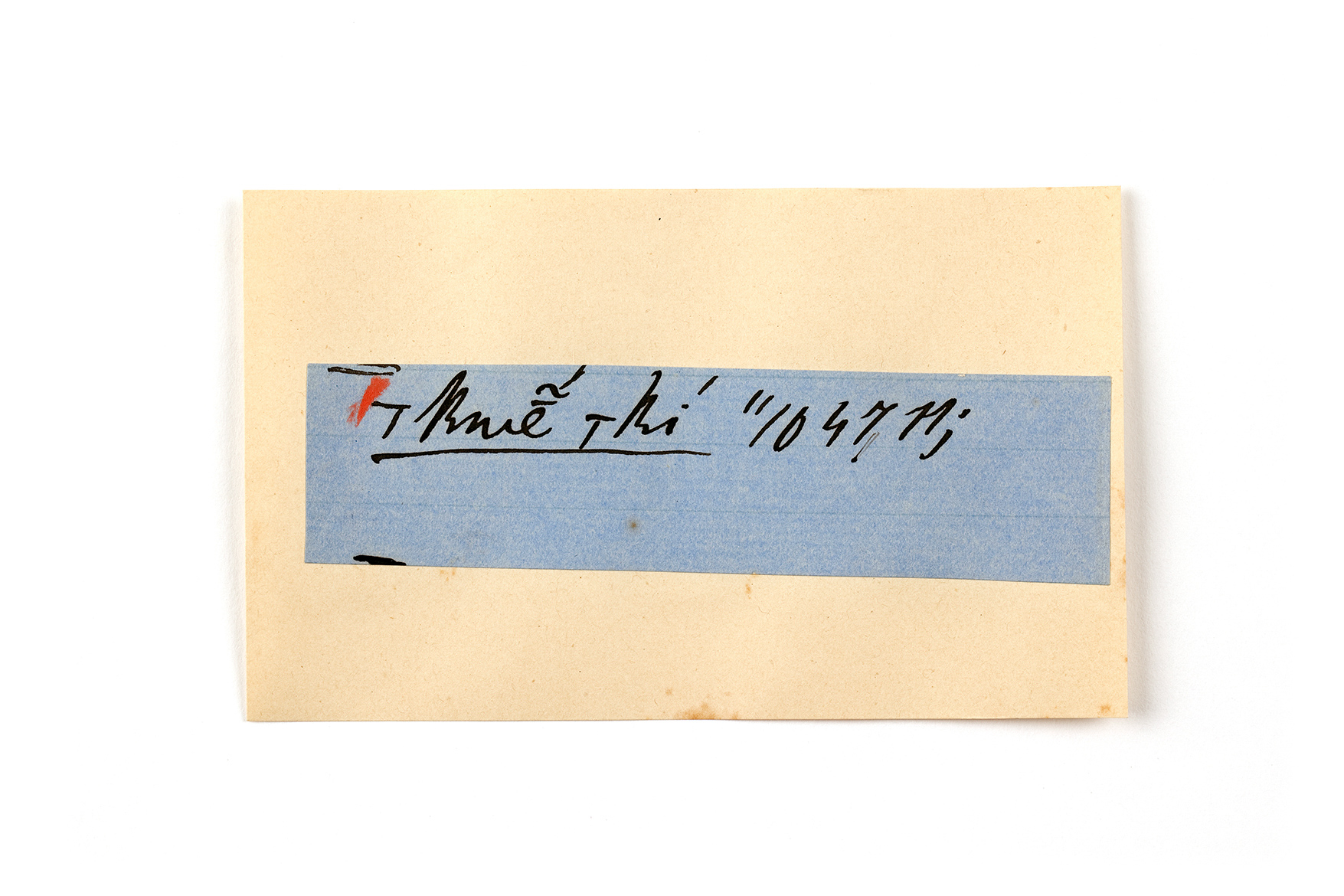 ink on blue paper glued on card