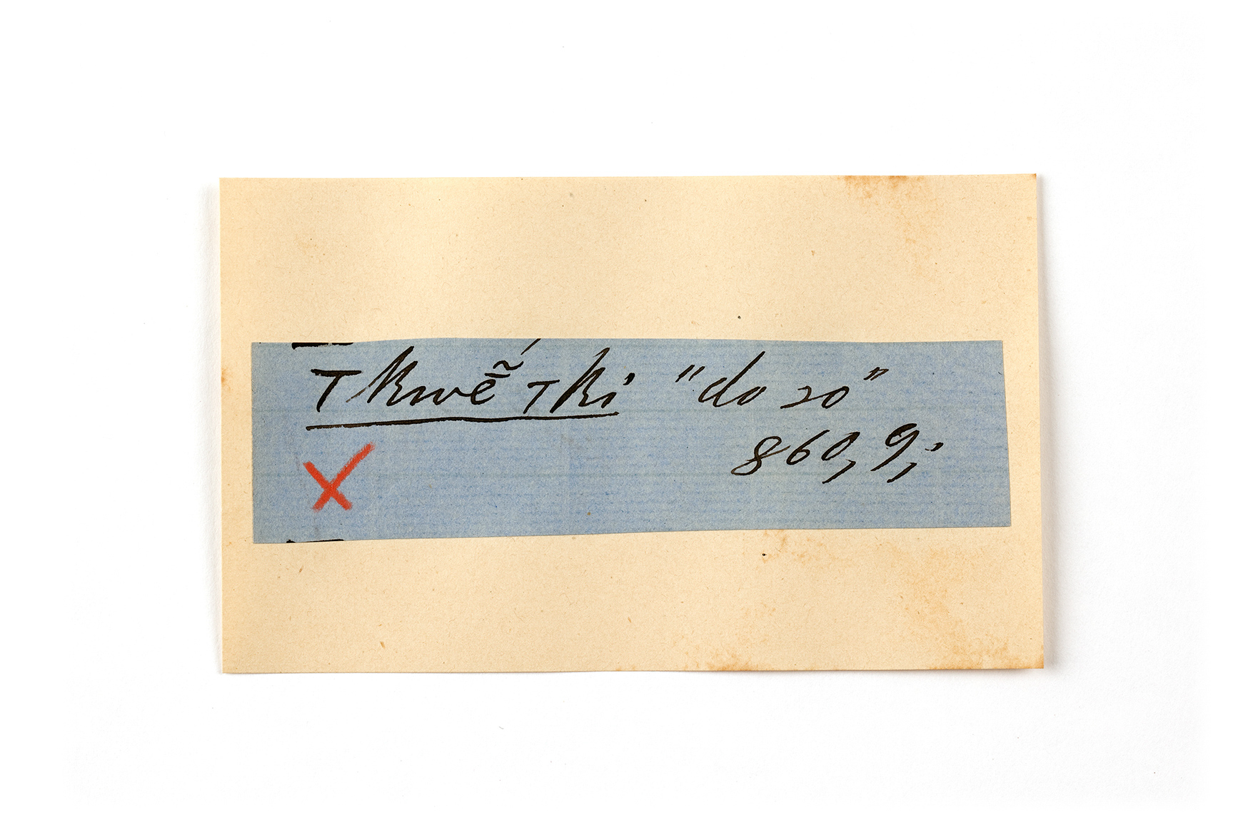 ink on blue paper glued on card