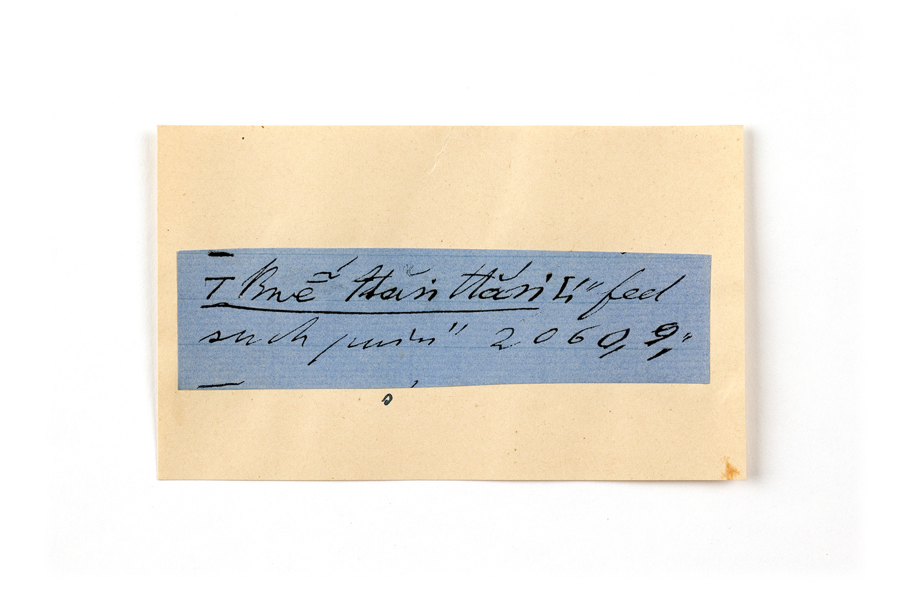 ink on blue paper glued on card