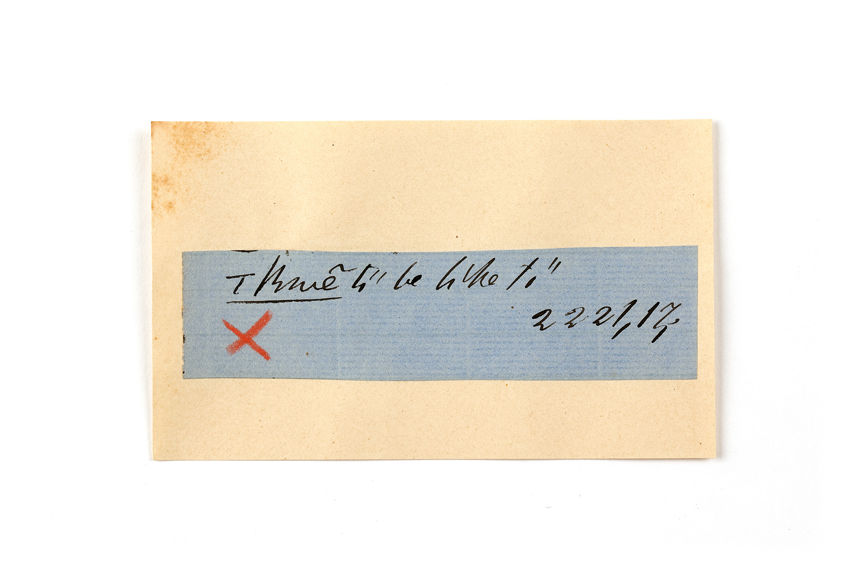 ink on blue paper glued on card