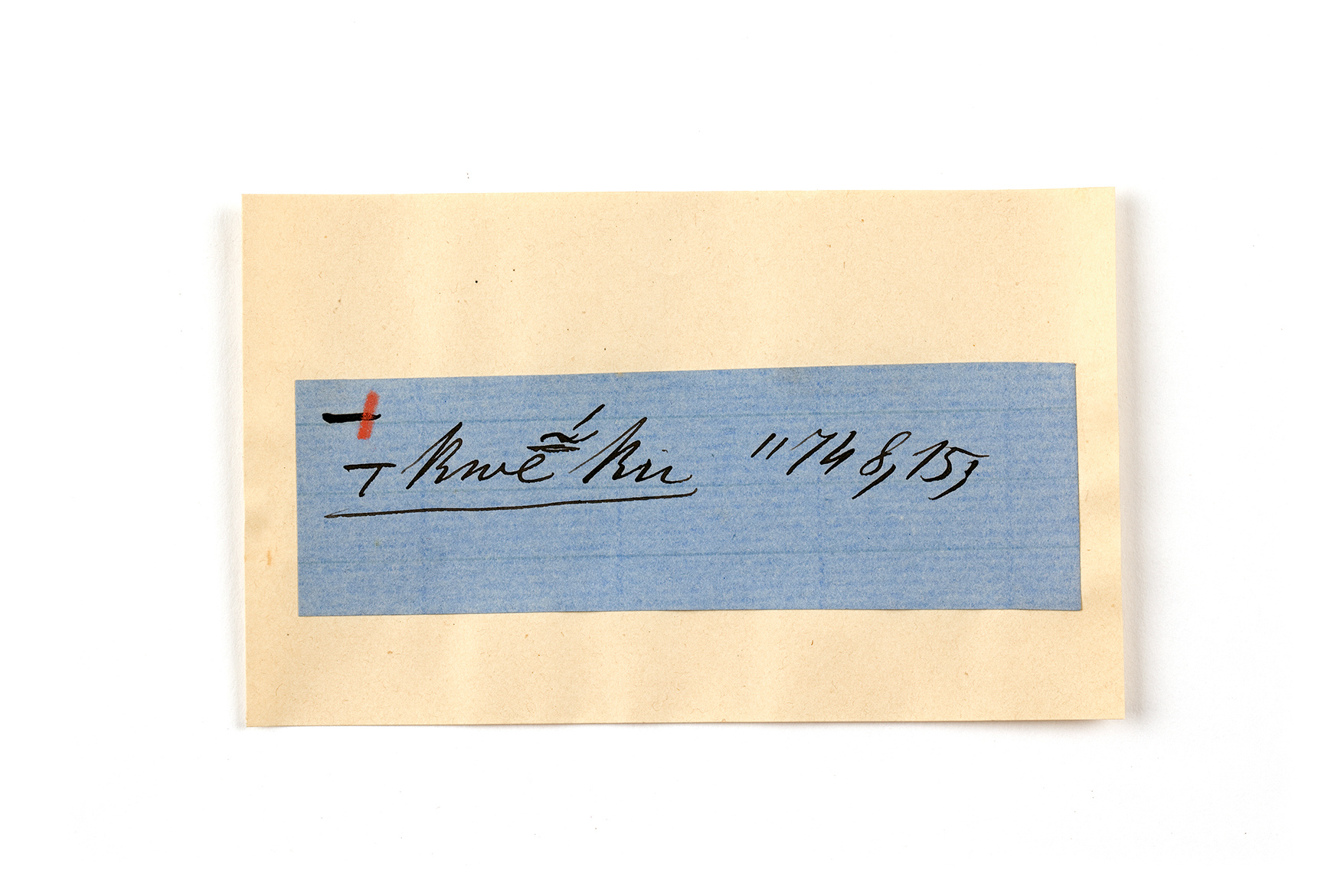 ink on blue paper glued on card