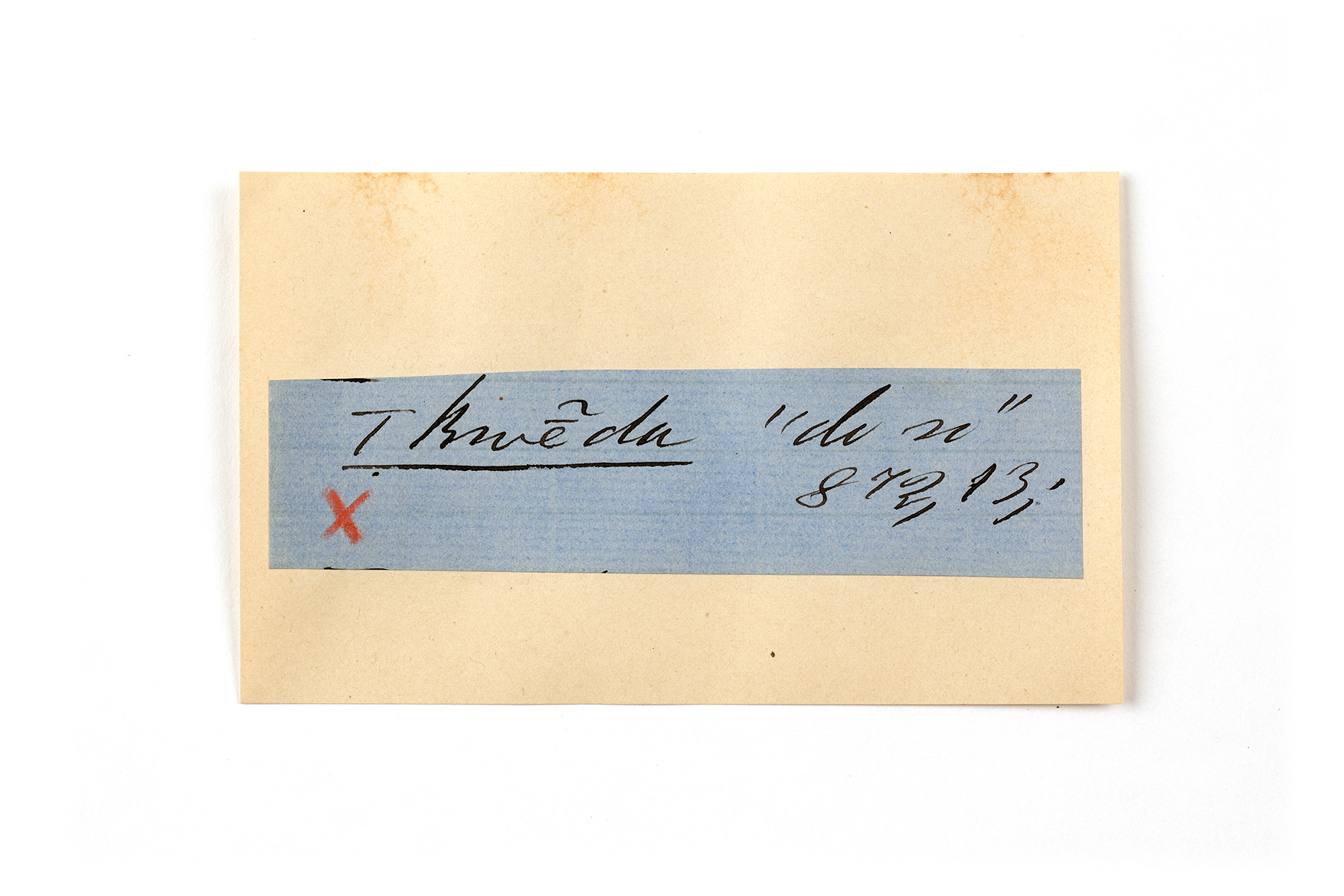 ink on blue paper glued on card