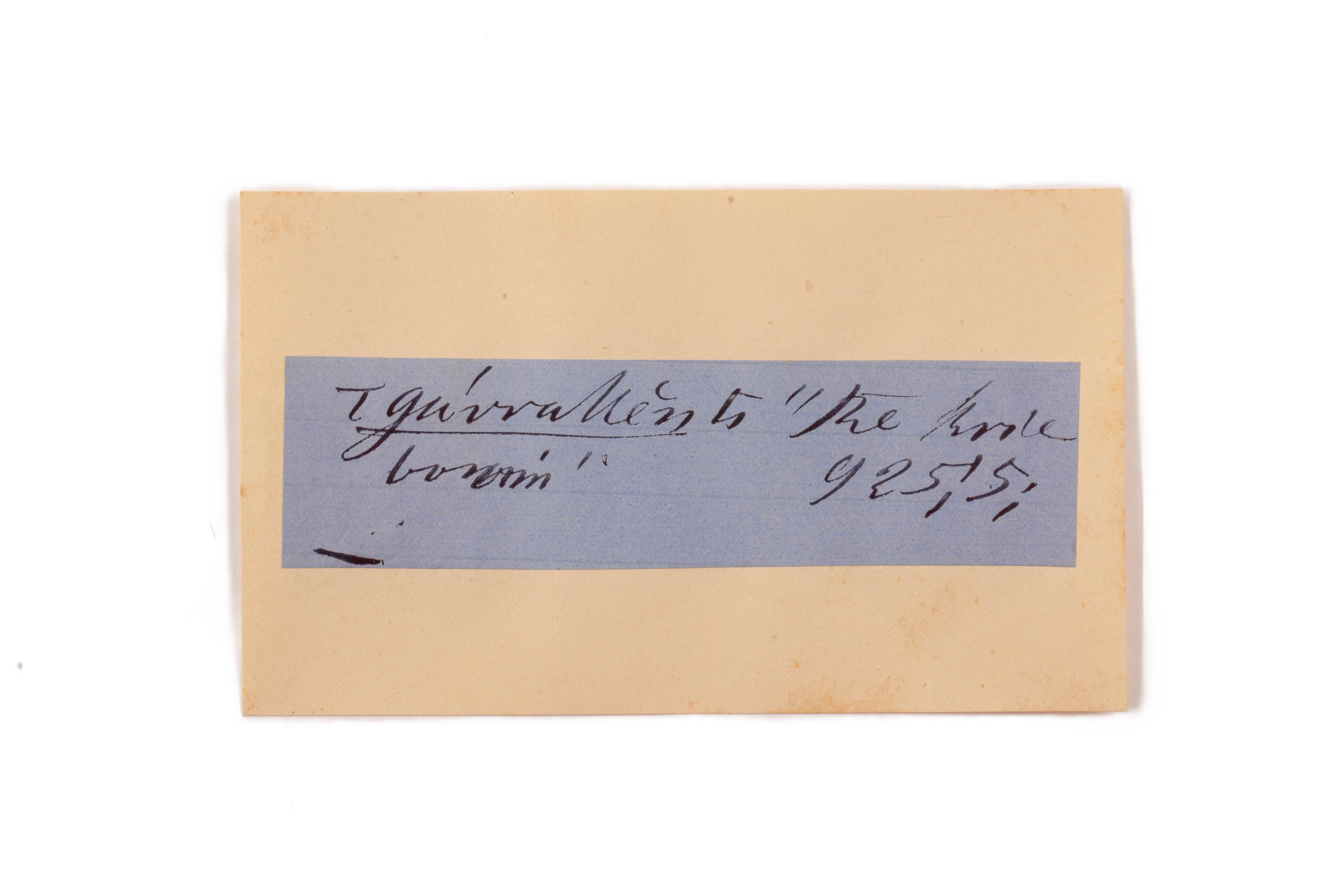 ink on blue paper glued on card