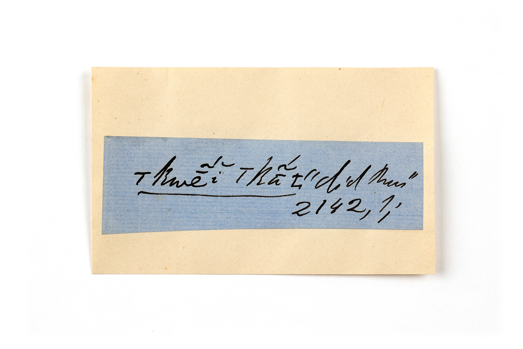 ink on blue paper glued on card