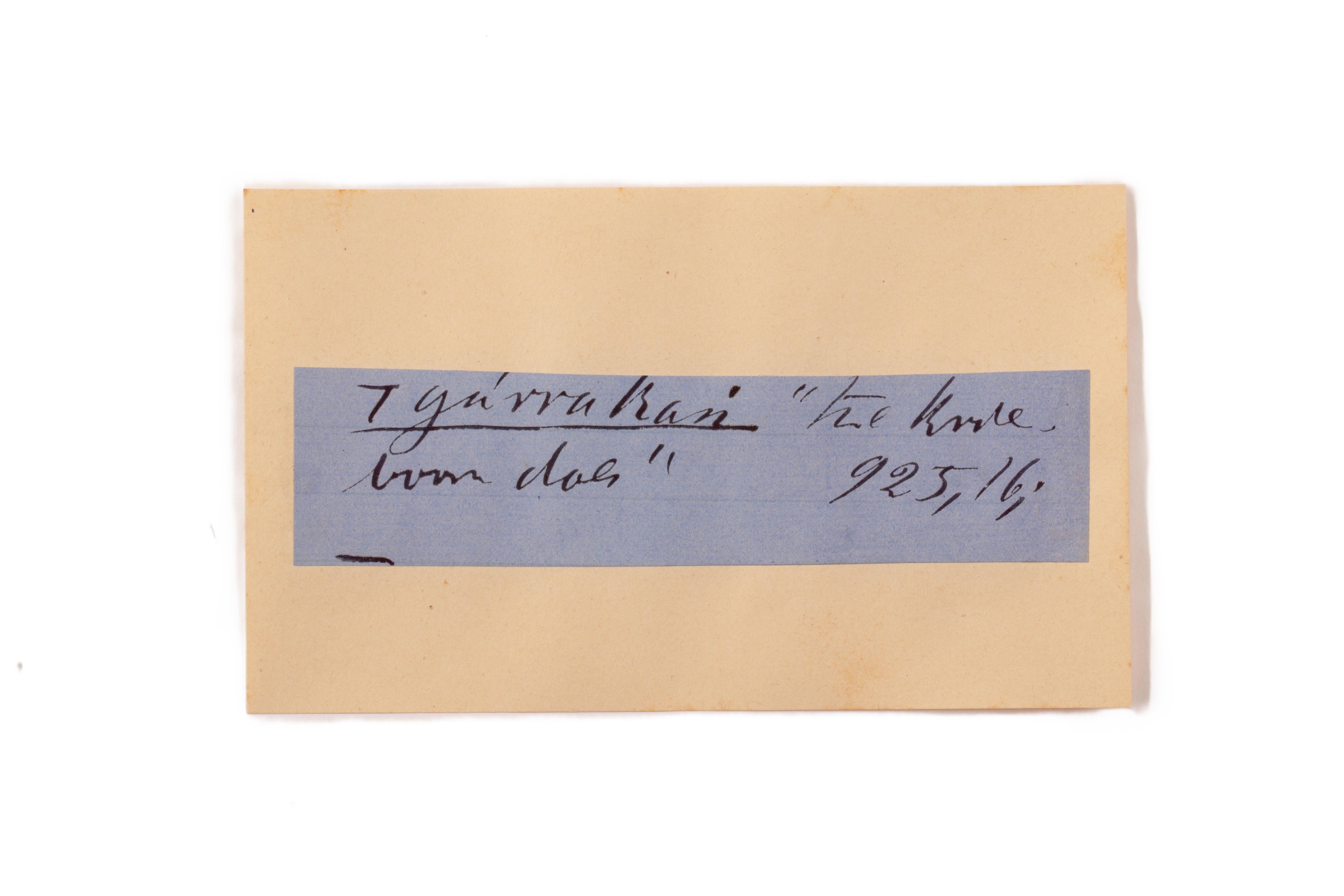 ink on blue paper glued on card