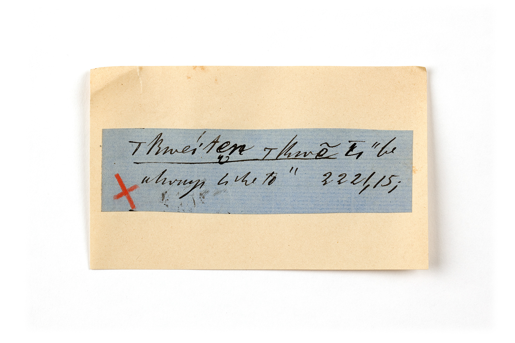 ink on blue paper glued on card