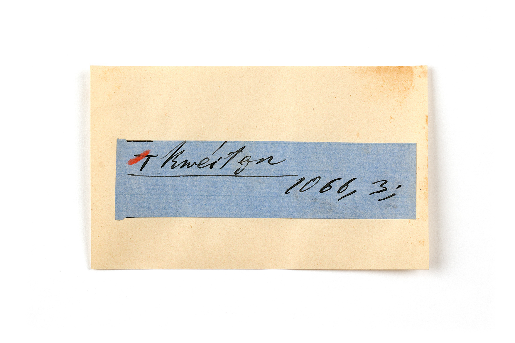 ink on blue paper glued on card