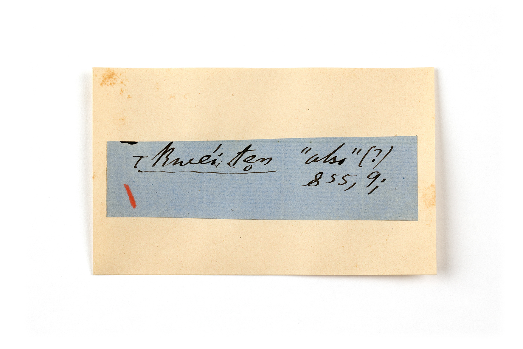 ink on blue paper glued on card