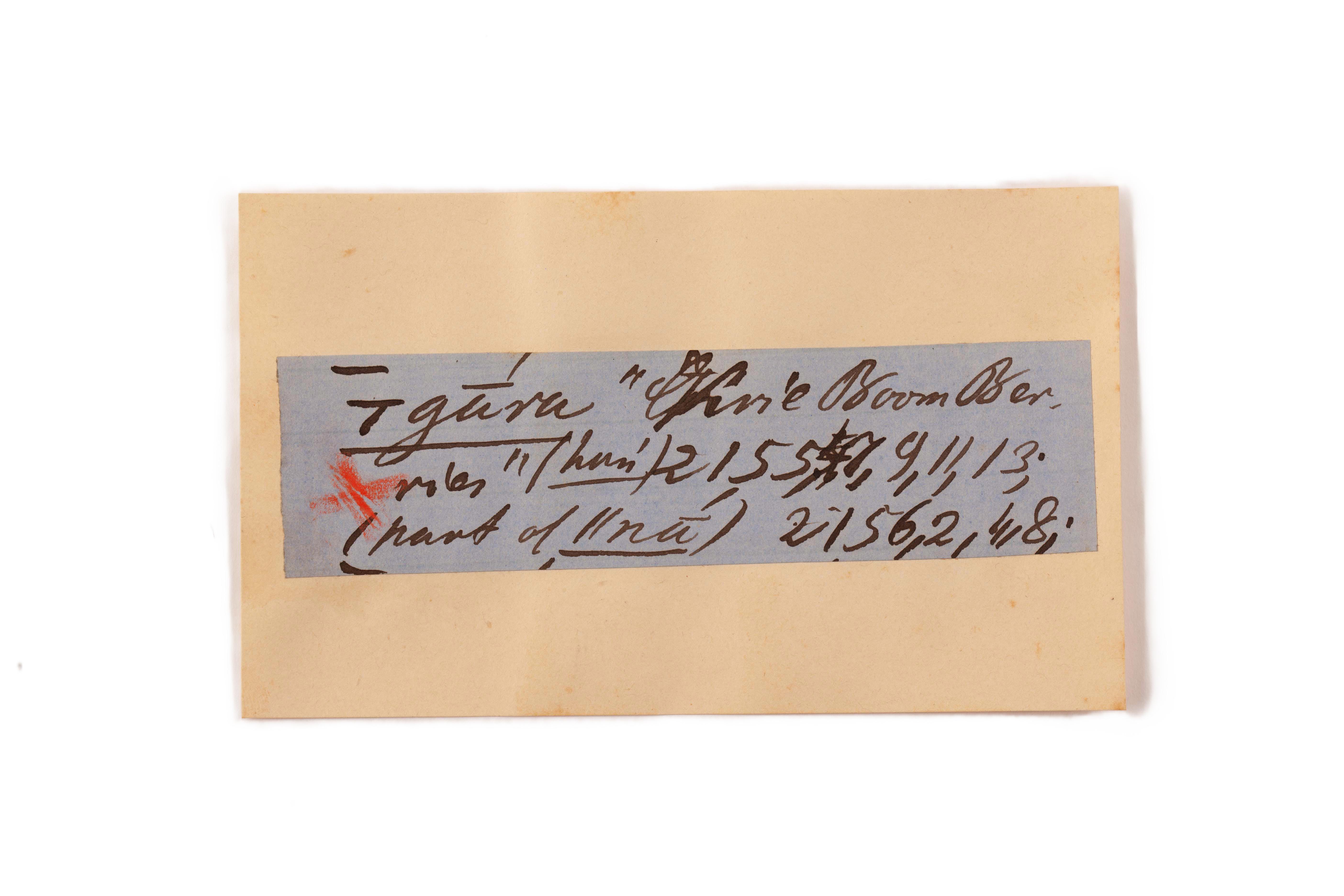 ink on blue paper glued on card