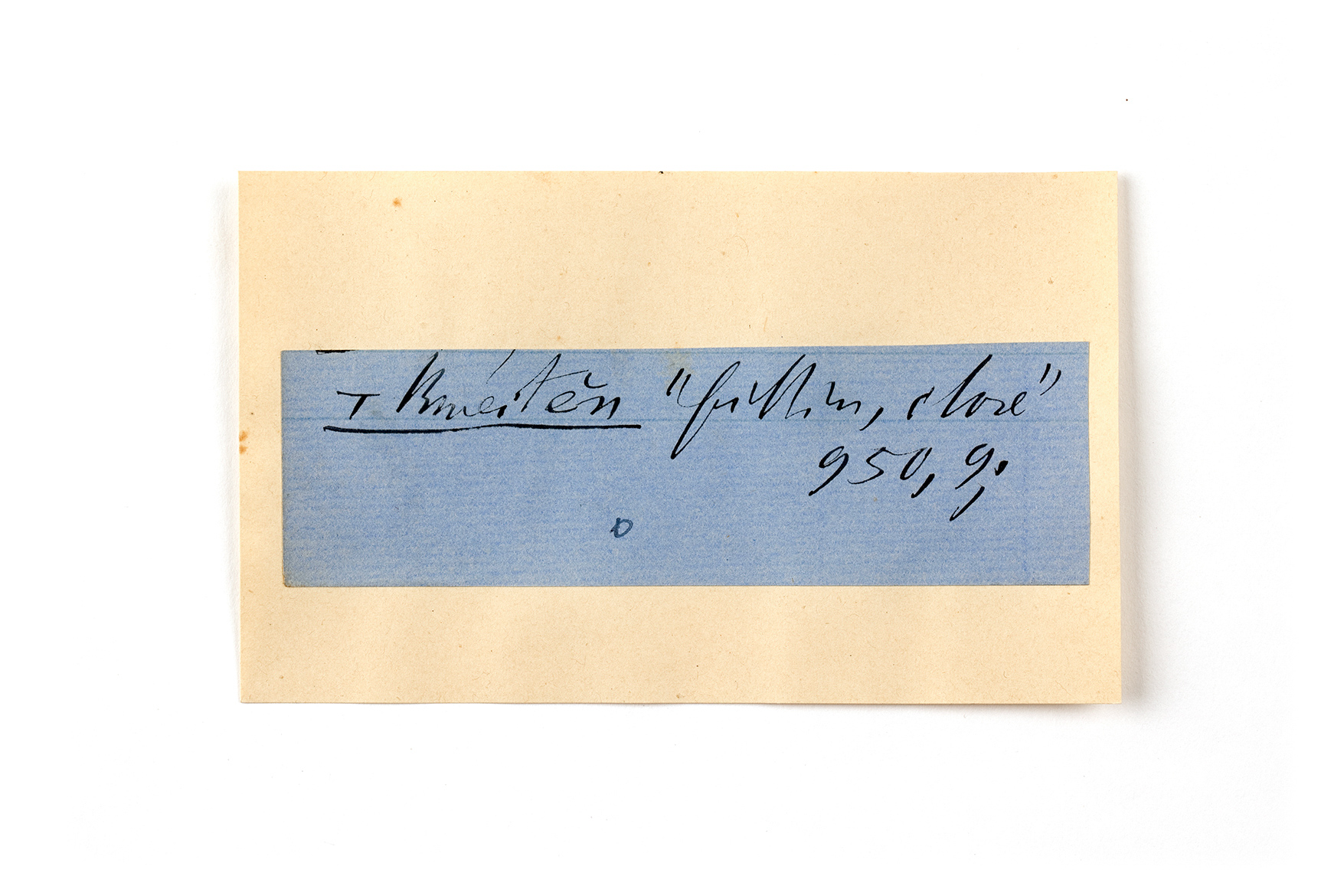 ink on blue paper glued on card