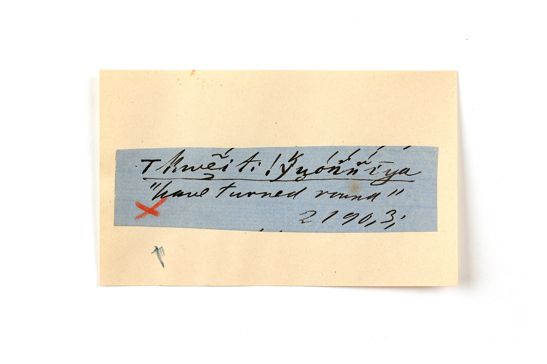 ink on blue paper glued on card