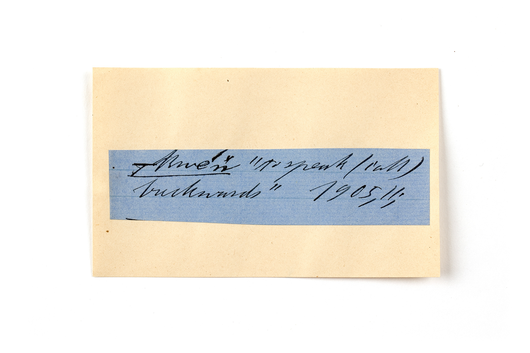 ink on blue paper glued on card