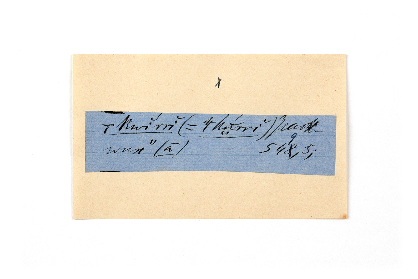 ink on blue paper glued on card