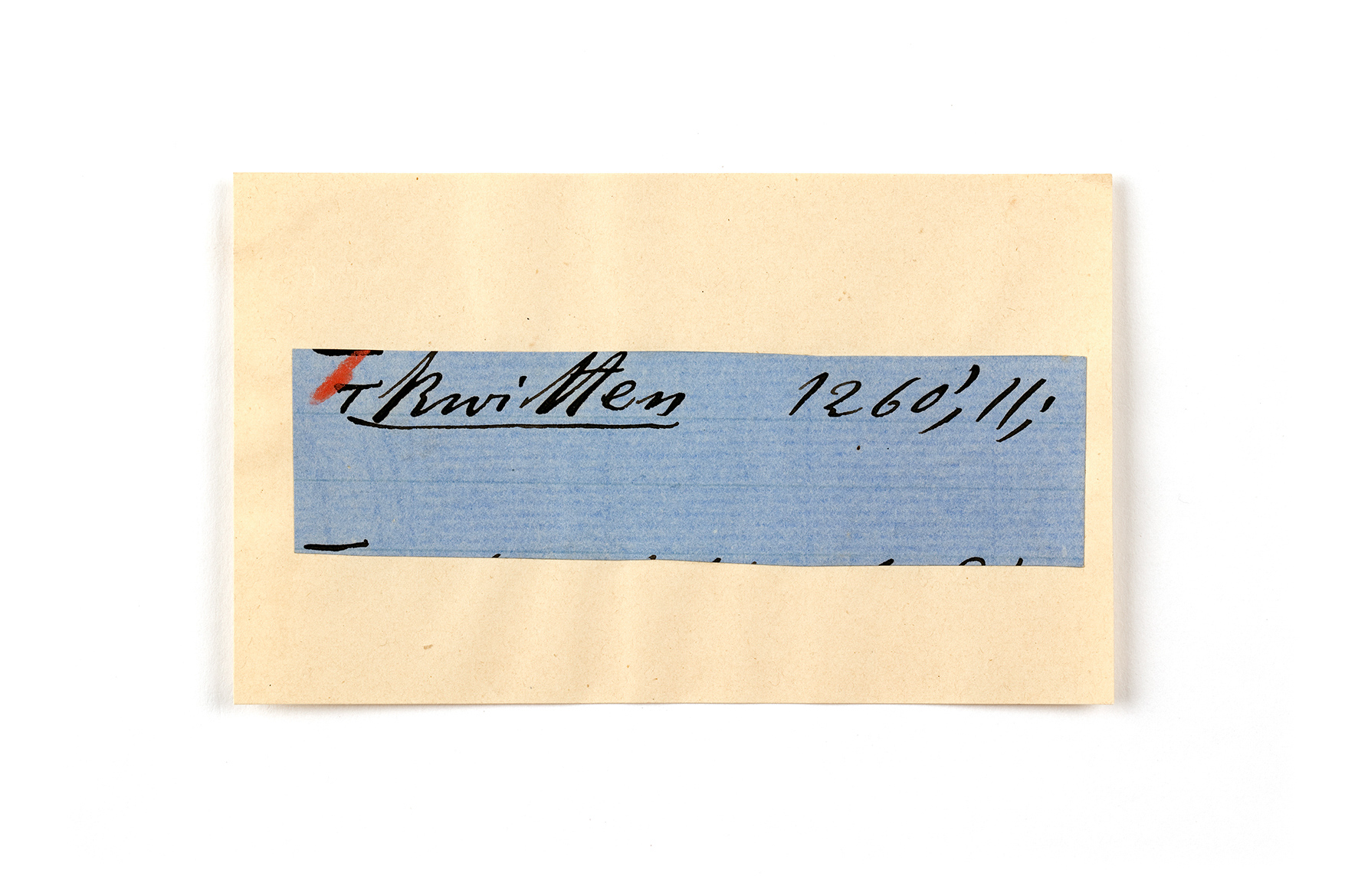 ink on blue paper glued on card