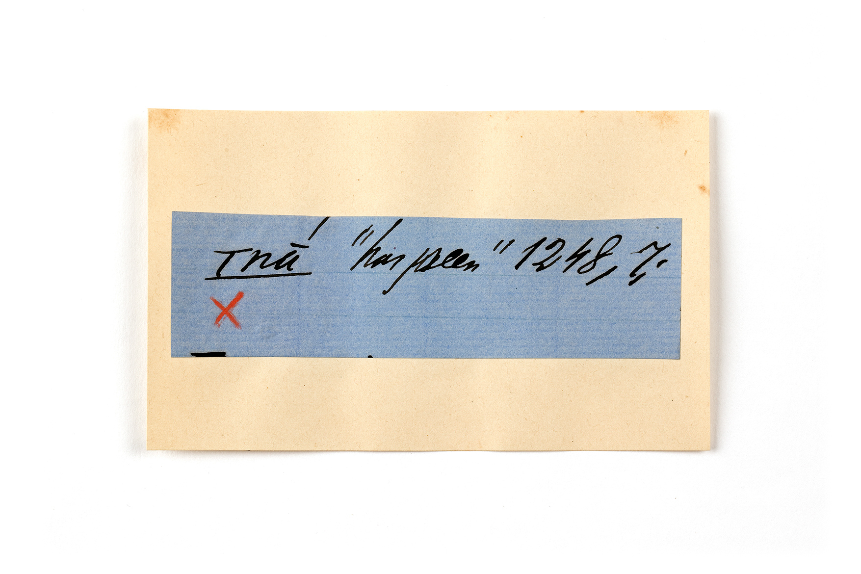 ink on blue paper glued on card
