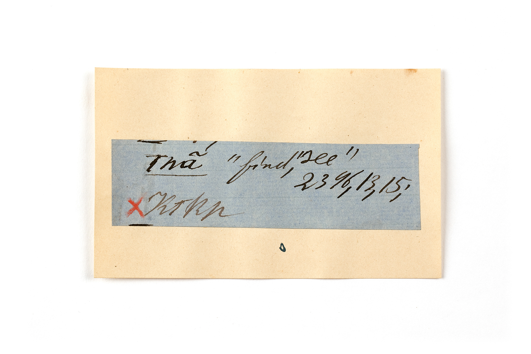 ink on blue paper glued on card