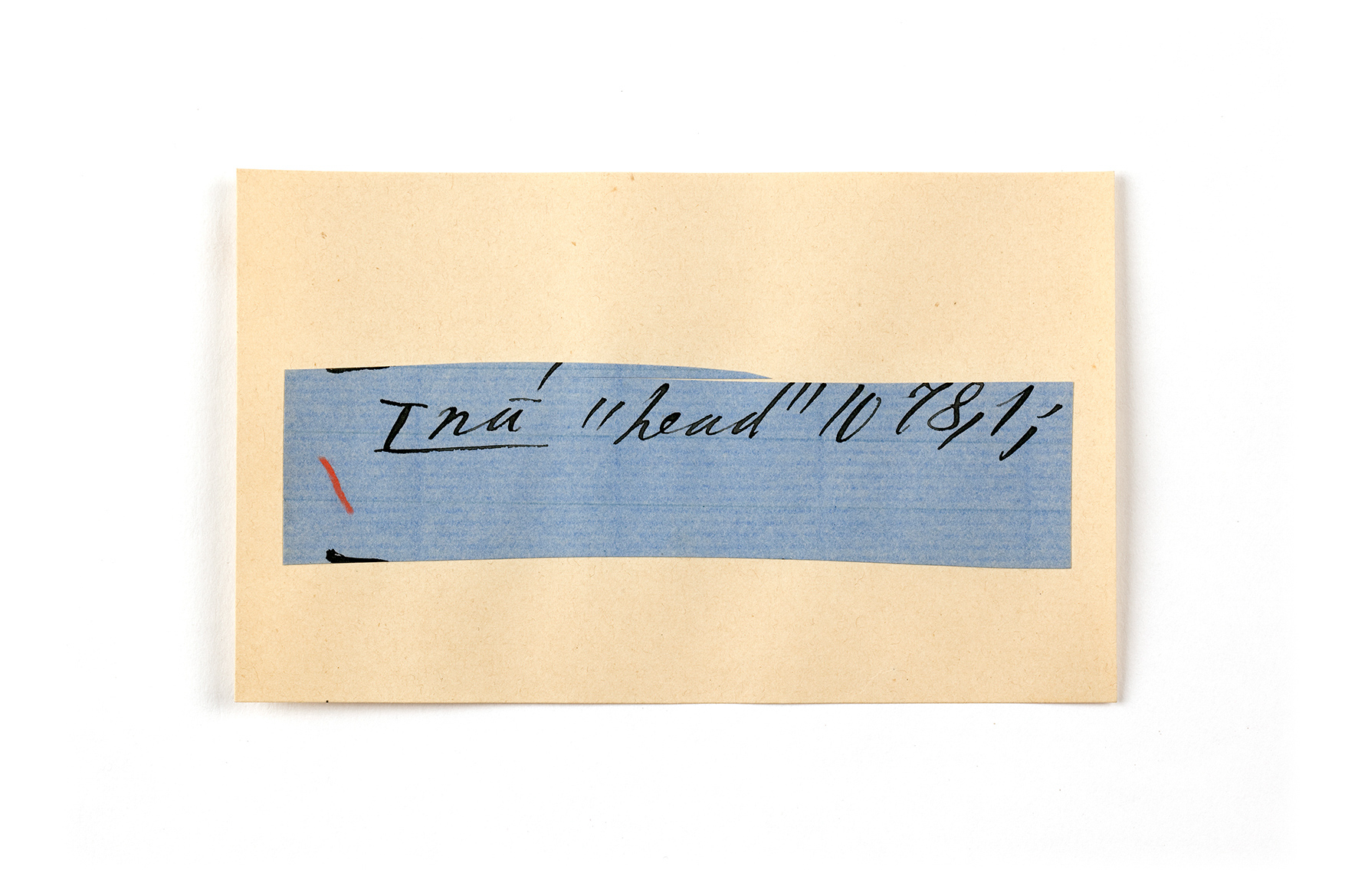 ink on blue paper glued on card