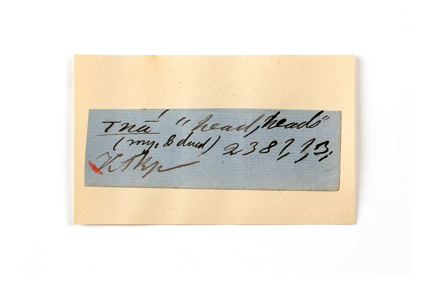 ink on blue paper glued on card