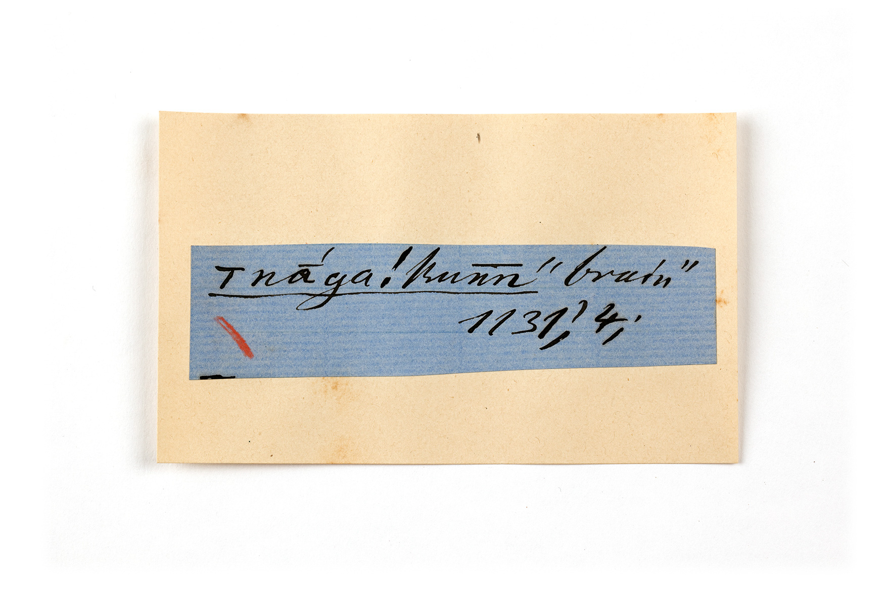 ink on blue paper glued on card